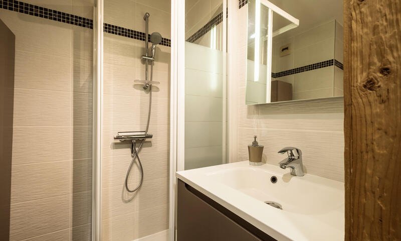 - SALLE D'EAU (2.69 m²) : vasque, douche, radiateur SECHE-SERVIETTES, LAVE-LINGE (6 KG)