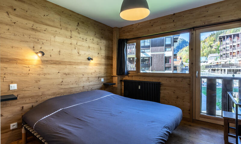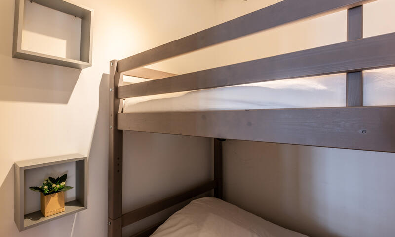 - CHAMBRE (9.75 m²) : 1 LIT 2 PLACES (140) + 1 LIT 1 PLACE (80) = partie inférieure des lits superposés (lit supérieur interdit -6 ans), baie + porte-fenêtre ouest, balcon sud ouest, vue résidences voisines / montagne
