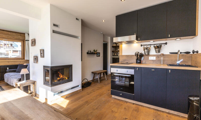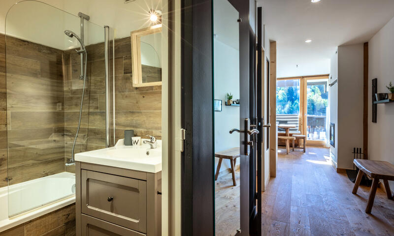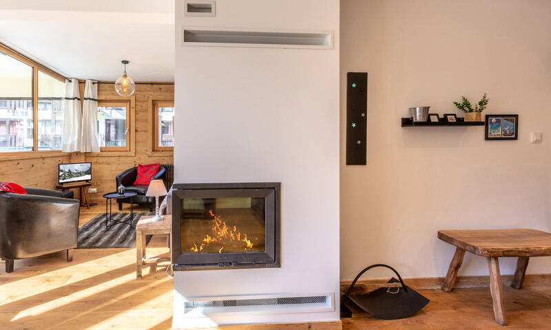 - SEJOUR (19.58 m²) : coin repas, cheminée décorative, TV écran plat, baies, porte-fenêtre sud, balcon sud ouest, vue résidences voisines / station / montagne