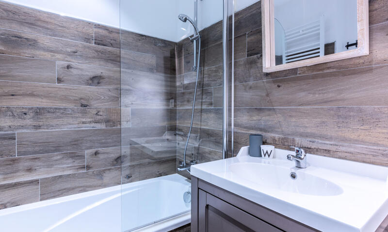 - SALLE DE BAINS (2.88 m²) : vasque, baignoire, radiateur SECHE-SERVIETTES, LAVE-LINGE