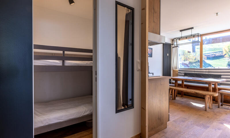 - SEJOUR (17.65 m²) et COIN MONTAGNE : 2 LITS SUPERPOSES (80) -> lit supérieur interdit -6 ans, fenêtre nord, vue route de la Piscine, COIN REPAS : TV écran plat, lecteur DVD, fenêtres est, porte-vitrée sud, balcon sud est, vue station / montagne