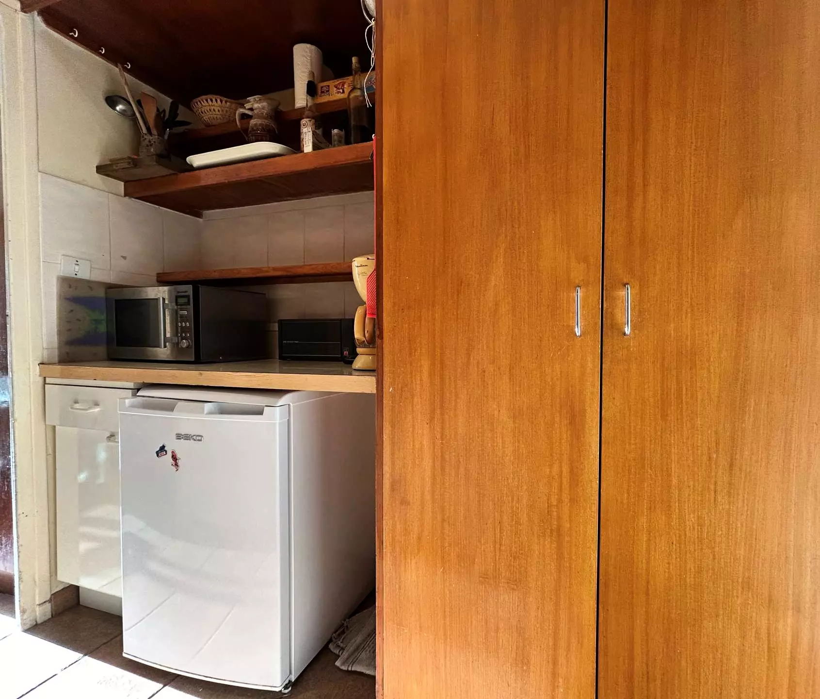 Il comprend une entrée desservant la salle d'eau avec WC, une kitchenette séparée équipée d'un micro-ondes, d'un mini-four, de 2 plaques électriques, d'une cafetière électrique...
