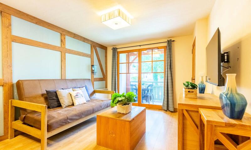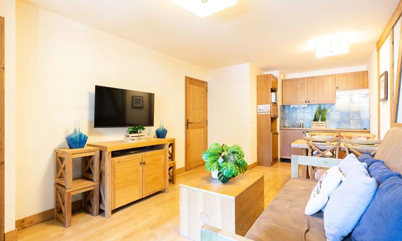 -Un séjour avec 1 canapé convertible 2 places et TV , ouvert sur une Cuisine équipée (plaques vitrocéramique, micro-ondes, lave-vaisselle