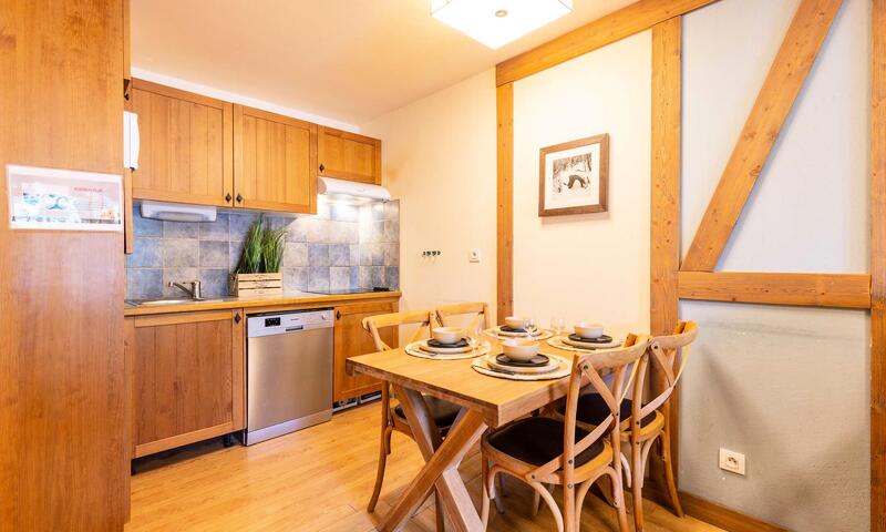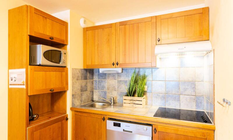 -Un séjour avec 1 canapé-lit 2 places et TV , ouvert sur une Cuisine équipée (plaques vitrocéramique, micro-ondes, lave-vaisselle)