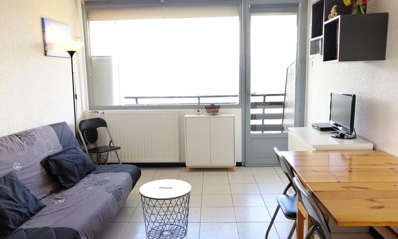 * Séjour : 1 convertible 2 places type clic-clac, TV écran plat, lecteur DVD, rangements, accès balcon, lumineux ;