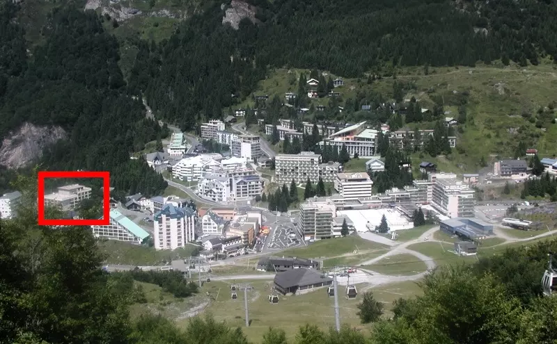 Résidence Christiania n°8 sur plan station, à 300m des pistes, ascenseur, accès à la résidence par des escaliers. Commerces à 250m.