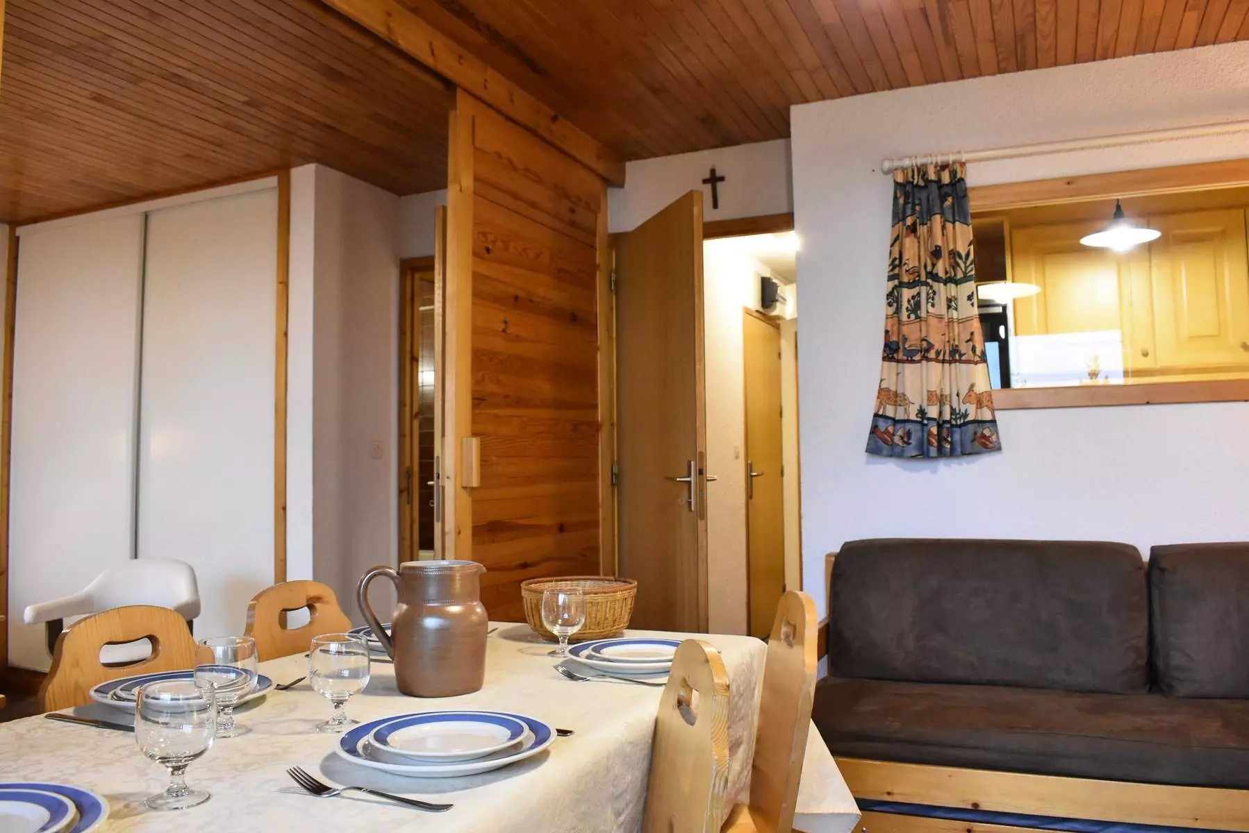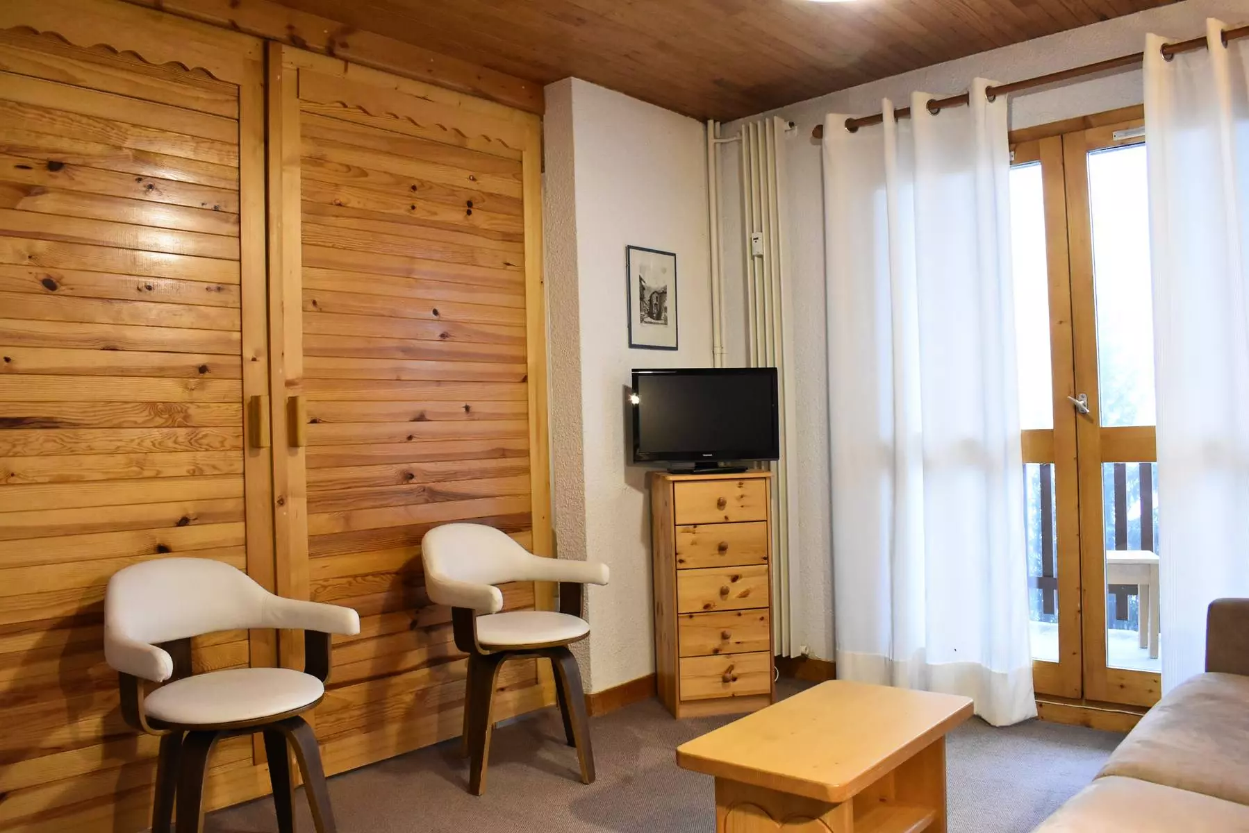 Cette location à la montagne comprend un séjour avec un ensemble de lits gigognes relevables (80x190) , une télévision, une cuisine ouverte et équipée, une chambre avec un ensemble de lits superposés et un lit une personne (80x190) , une salle de bain et un wc indépendant.