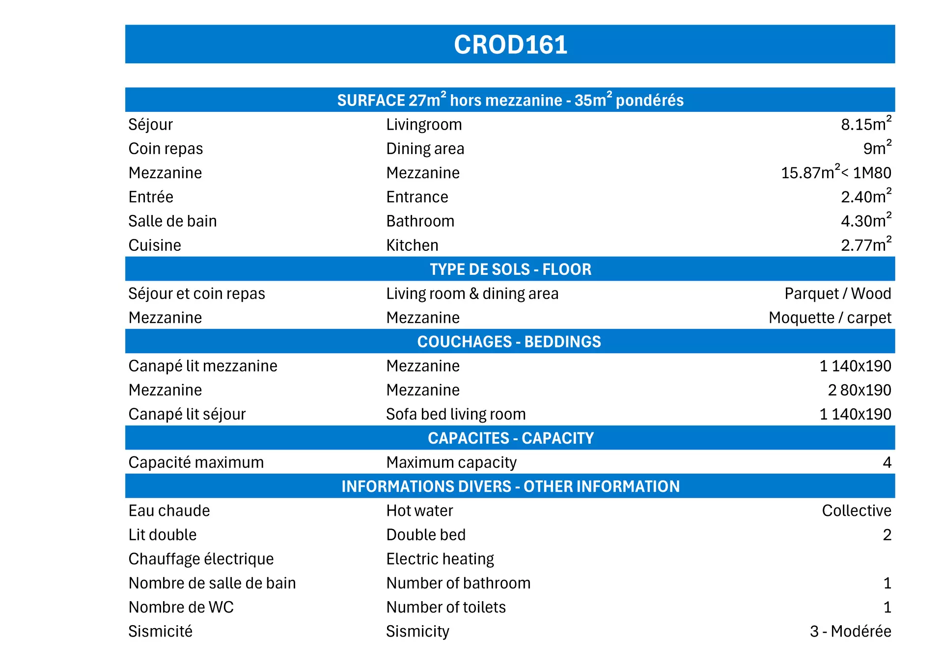 Surface (m²) : 27