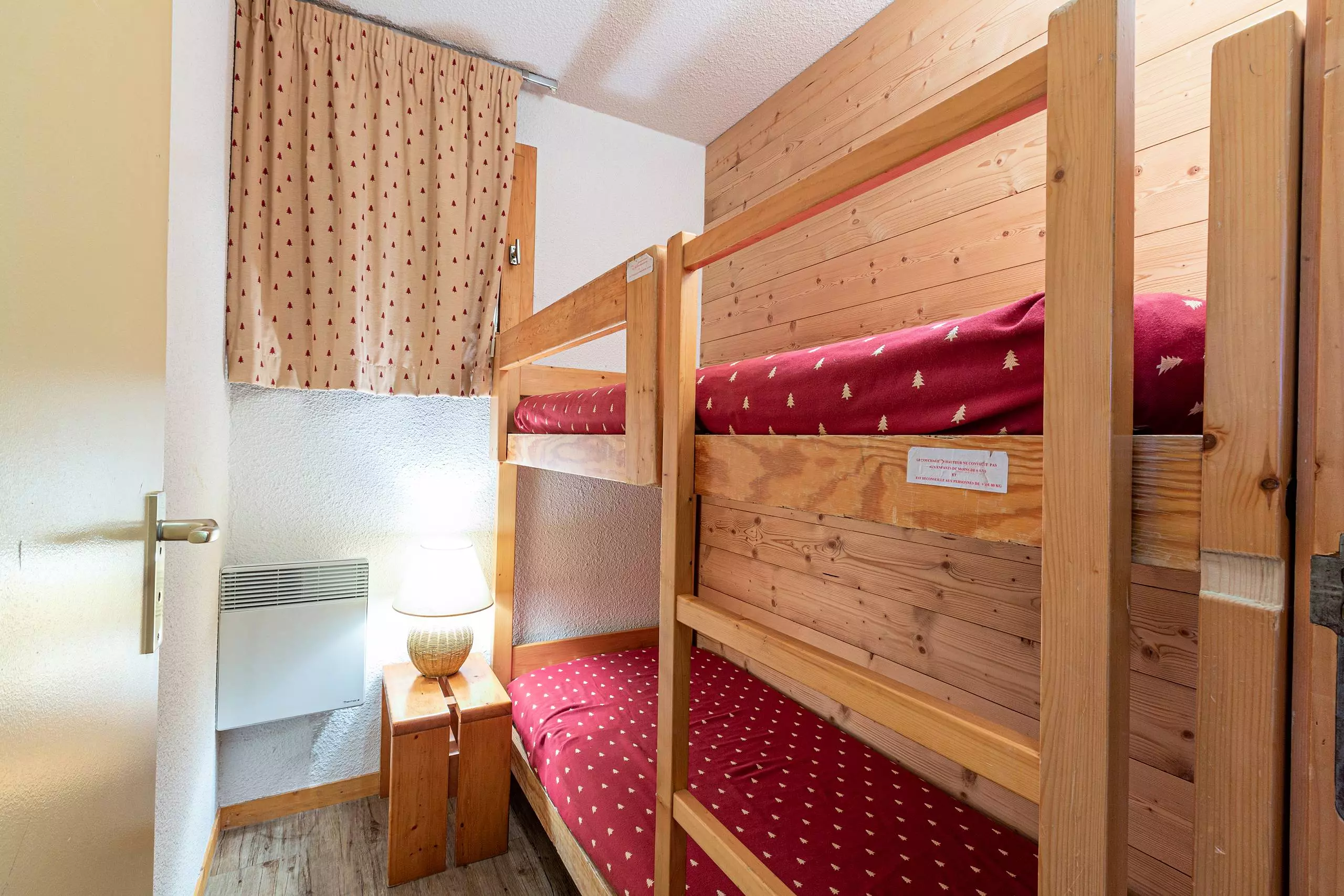 - Chambre cabine avec un ensemble de lits superposés.