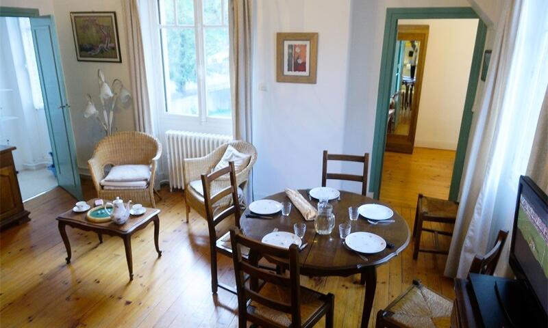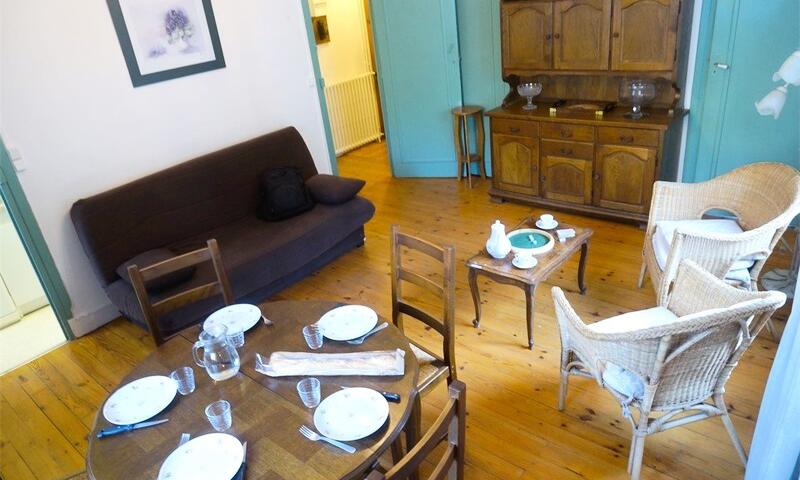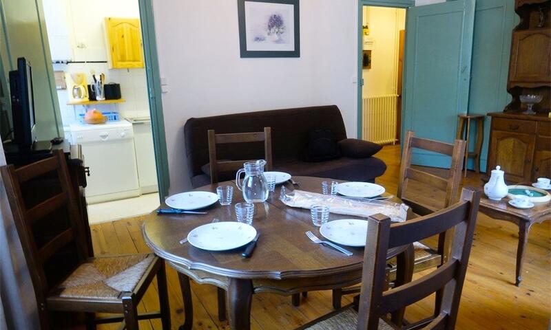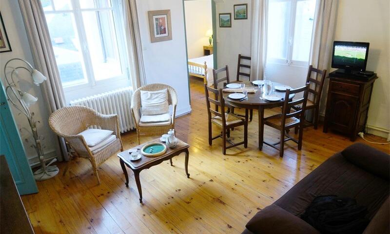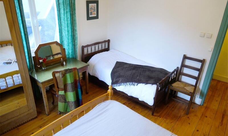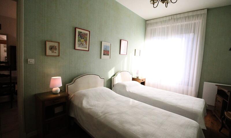 Cet appartement spacieux comprend une entrée, un séjour exposé ouest et nord, téléviseur, clic clac 2 pers., une kitchenette équipée (four, feux à gaz, micro-ondes, réfrigérateur congélateur, lave-vaisselle, cafetière filtre, bouilloire, grille pain), une chambre sud-ouest avec un lit deux personnes en 140 et un lit une personne en 90, une autre chambre sud avec un lit en 140 et armoire, une salle d'eau avec wc. un cellier avec lave-linge.