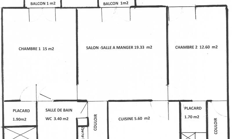 Une chambre sud avec 2 lits en 90 et tv, une autre chambre sud avec un lit en 140 donnant sur balcon. une salle d'eau avec douche et wc.