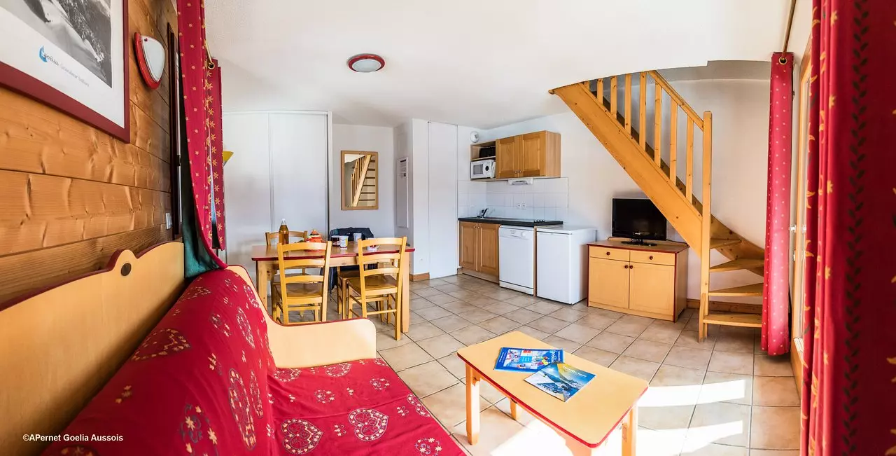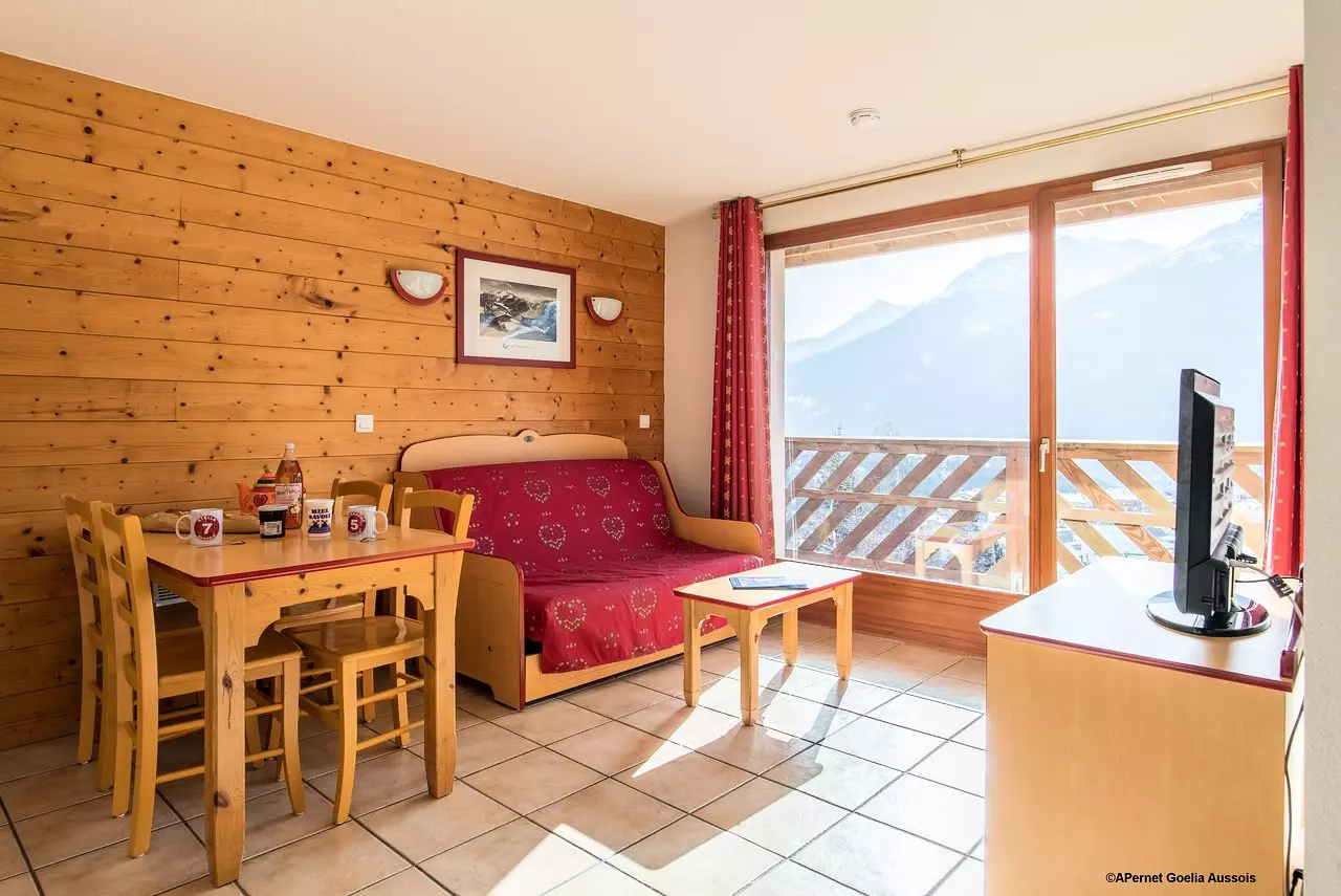 La Résidence Goélia Les Flocons d'Argent*** est située au pied des pistes en plein coeur de la station-village d'Aussois en lisière du Parc de la Vanoise.  Elle se compose de 8 résidences-chalets de 2 à 5 étages, tous les appartement bénéficient d'une jolie vue sur les pistes, sur les montagnes ou sur le vieux village d'Aussois.