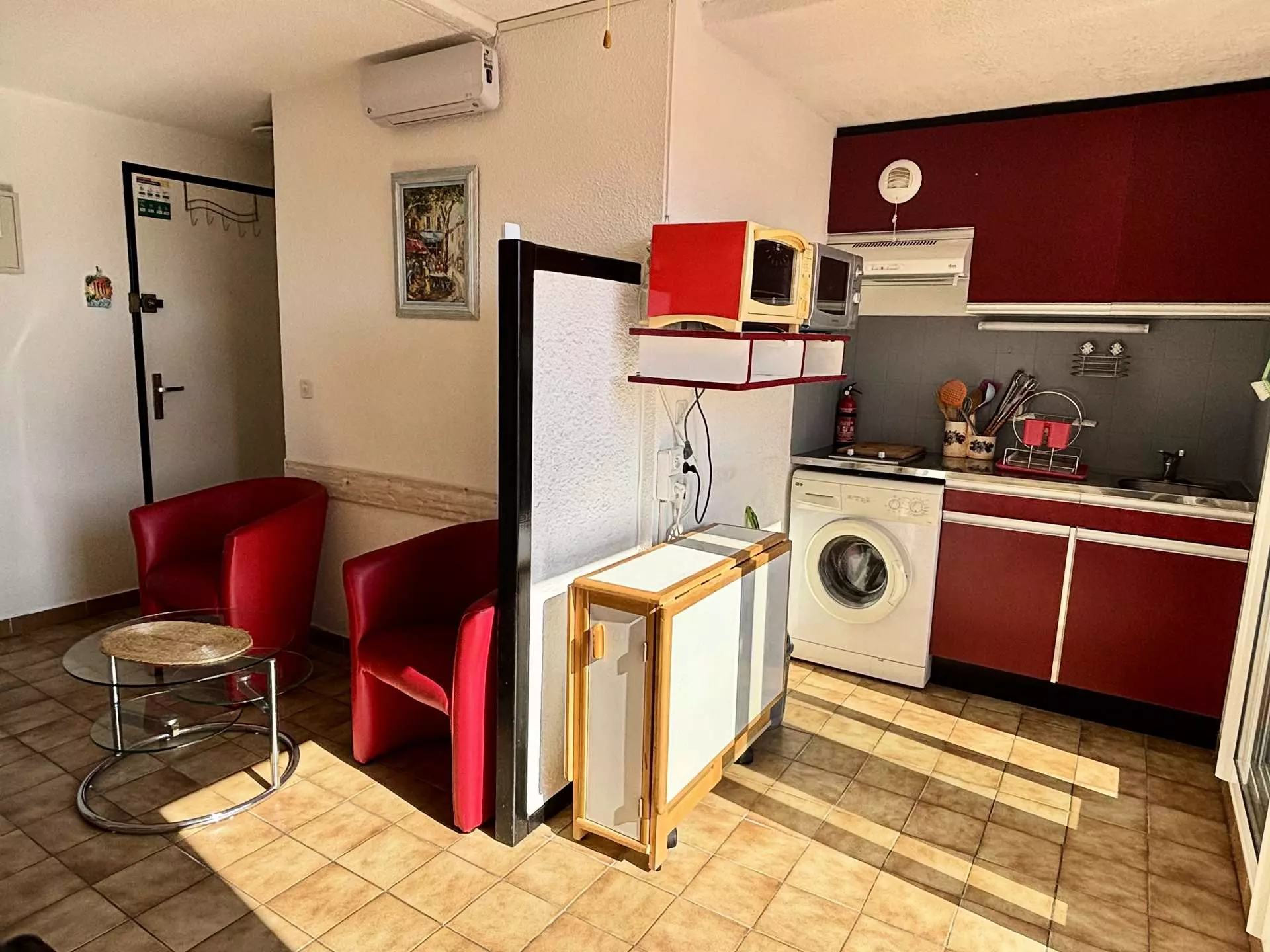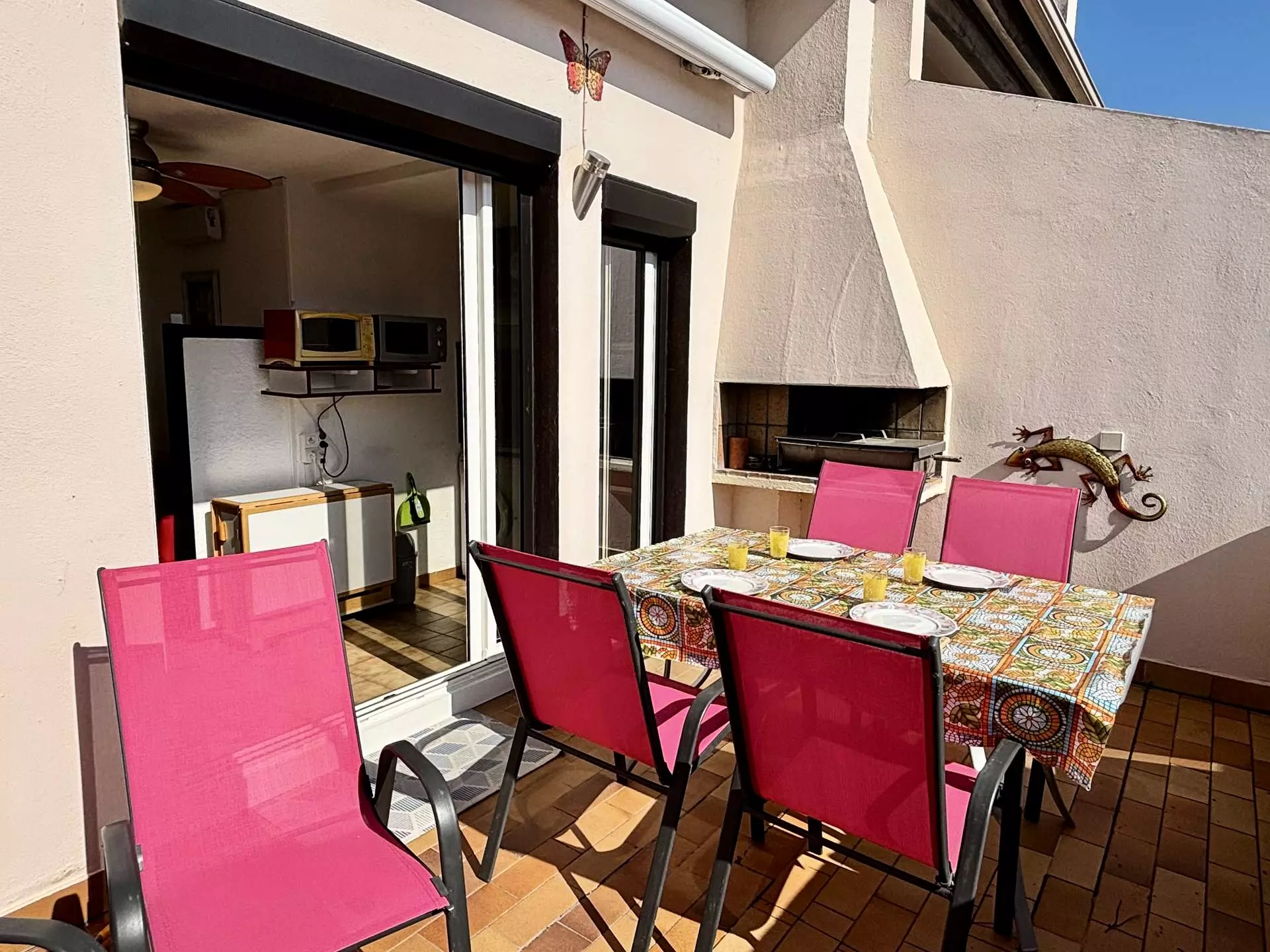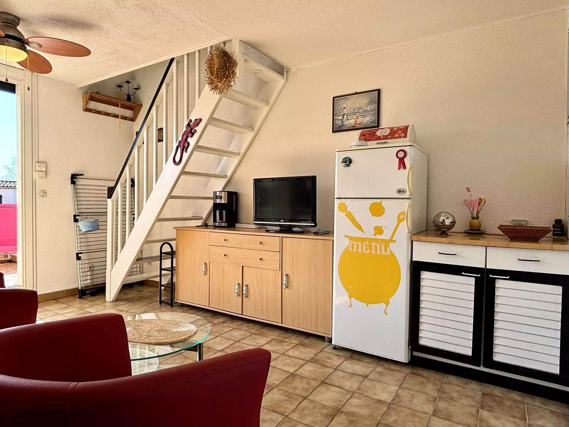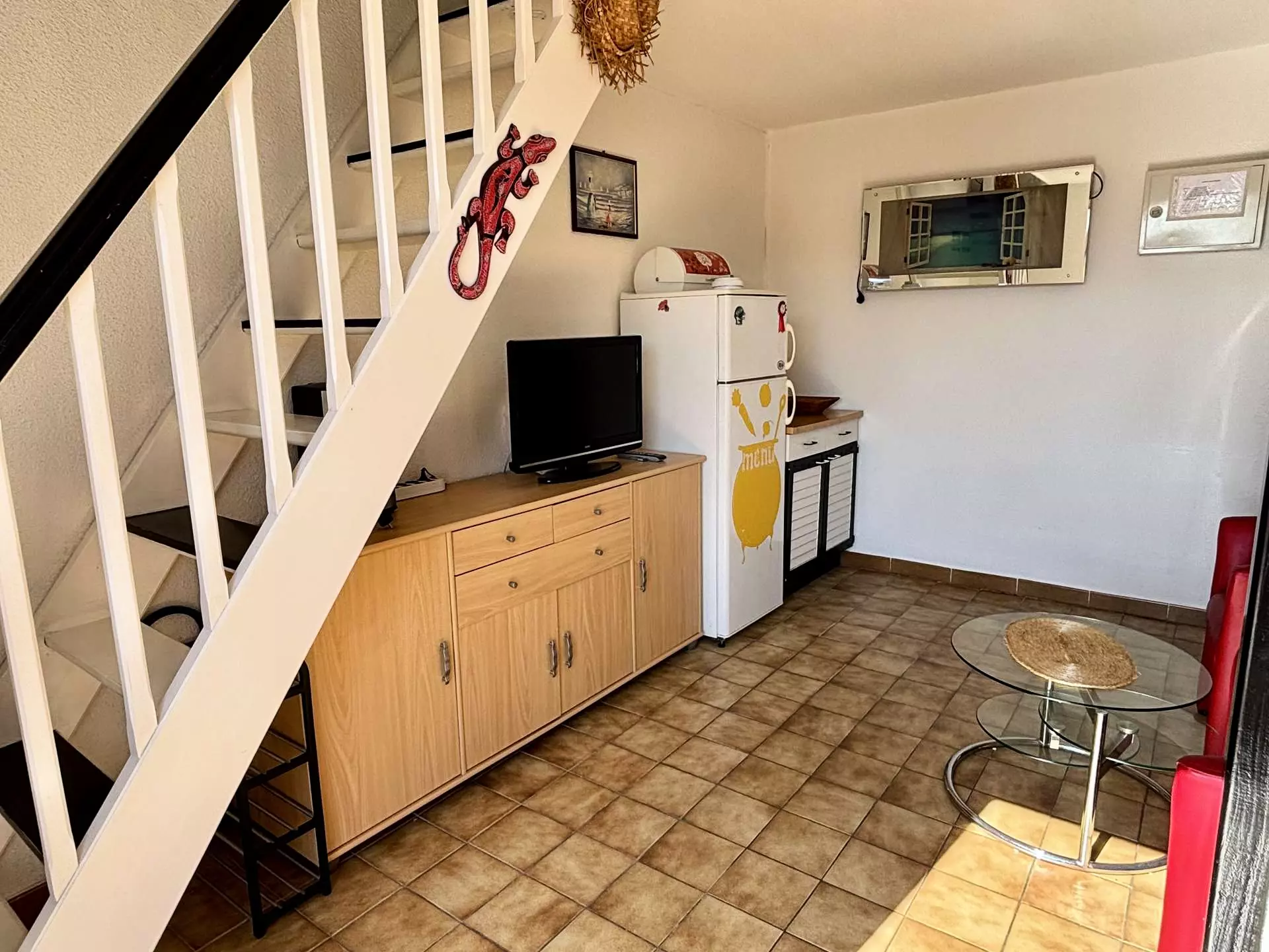 - Un séjour avec coin cuisine entièrement équipé et accès à une agréable terrasse aménagée pour vos repas en plein air.