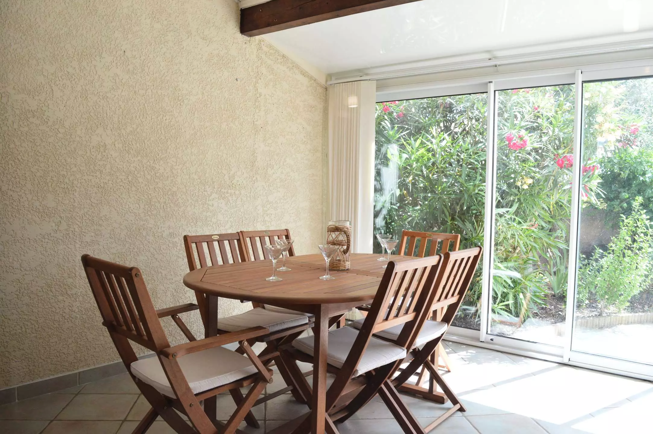 Les Plus de cette location à la mer : véranda avec salon de jardin et barbecue fixe