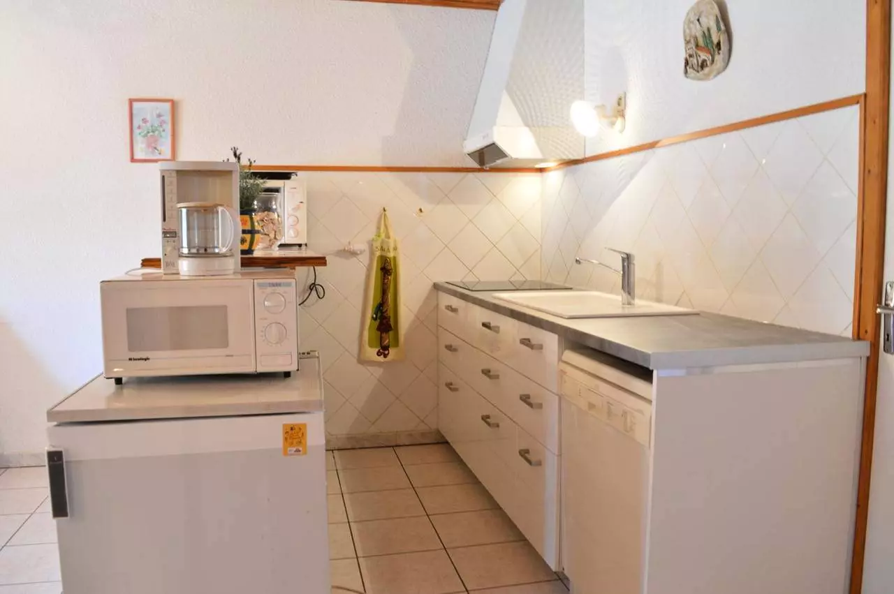 Cette location de villa de vacances de plain pied comprend une véranda avec mobilier de jardin, un séjour avec canapé non convertible et télévision (sous réserve d'une bonne réception) , un coin cuisine équipé, une chambre avec deux lits une personne, deux chambres avec chacune un lit deux personnes, une salle d'eau et wc séparés.