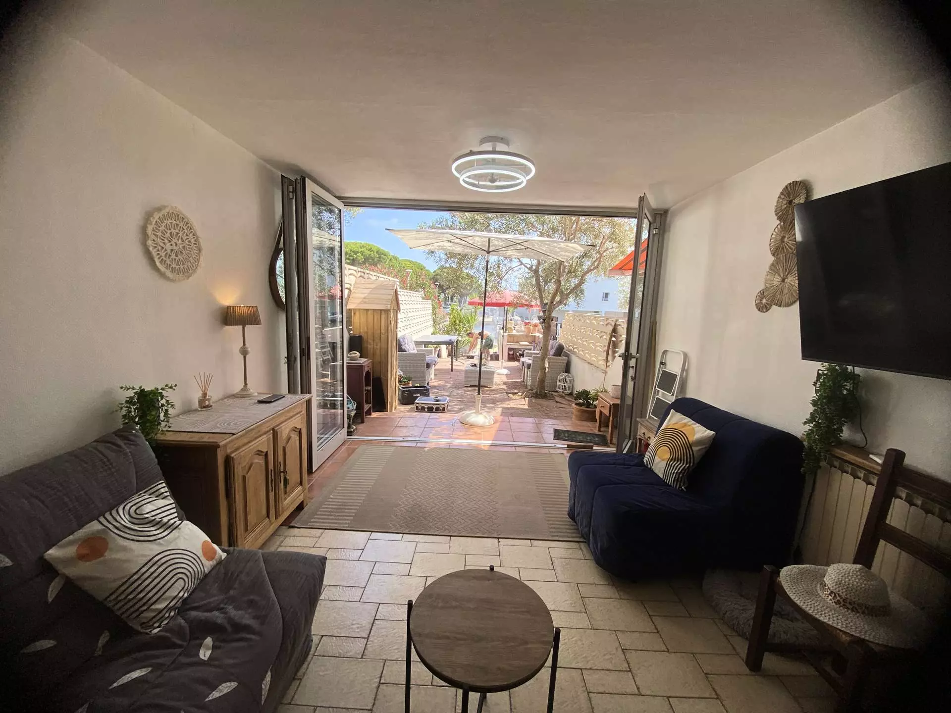 La résidence Helios, est composée de magnifiques marinas en plein coeur de Port Camargue. Celle-ci d une surface de 65m², est composée d un grand séjour donnant sur une terrasse ensoleillée avec un appontement privatif et d une cuisine au rez de chaussée. A l étage, deux belles chambres avec un lit en 140 , un lit de 2 matelas de 80x200, et une salle d eau vous attendent. Sa capacité de couchage est de 8 personnes grâce au BZ et 2 autres matelas en 80x200, situés dans le salon au rez de chaussée. Offrant un véritable havre de paix, cette marina comblera vos besoins de farniente et de soleil au bord de l eau.