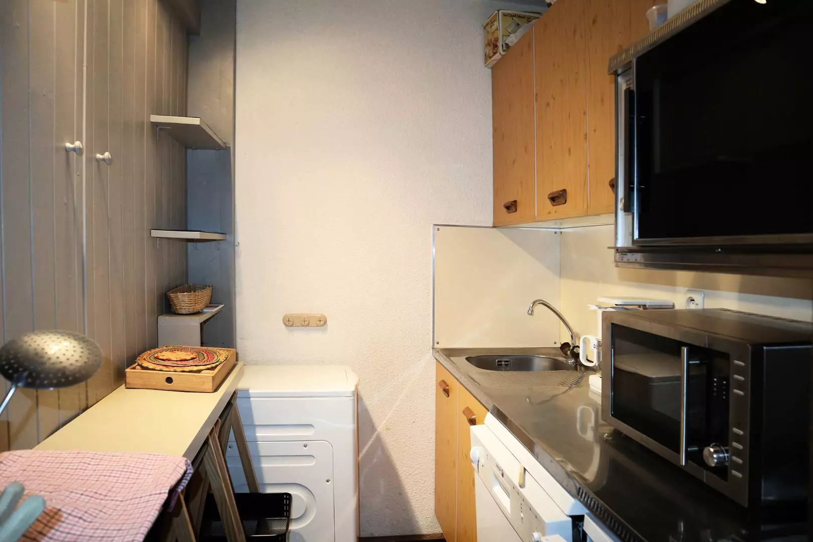 Situe à 300 m du centre station et environ 100 m des pistes. Appartement deux pièces pour 6 personnes au Rez-de-chaussée, comprenant, une entrée, un coin montagne avec 2 lits superposés 1 place, un séjour avec 1 banquette convertible 2 places, un coin cuisine, une chambre avec 1 lit 2 places, une salle de bains et wc séparés. Petite terrasse offrant une belle vue exposition Sud Ouest, environnement très agréable dans la forêt de mélèzes.