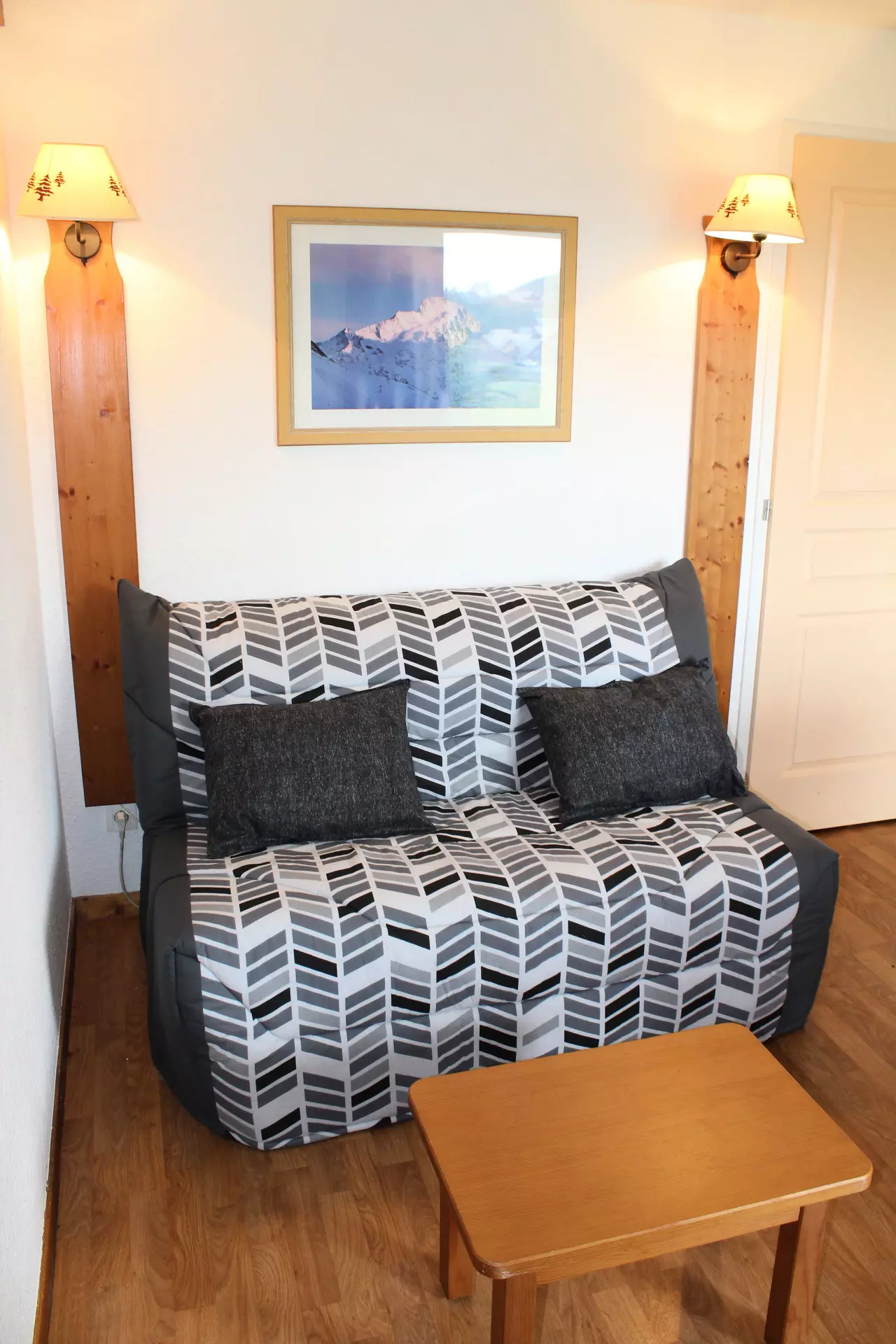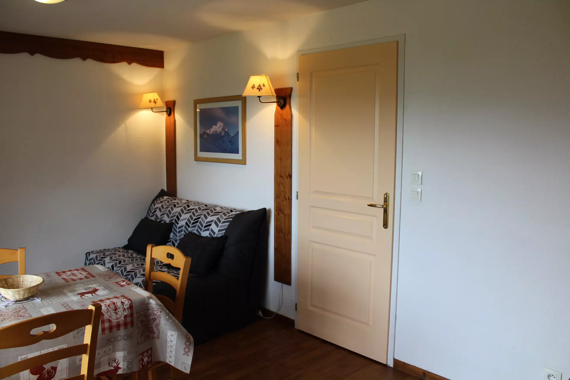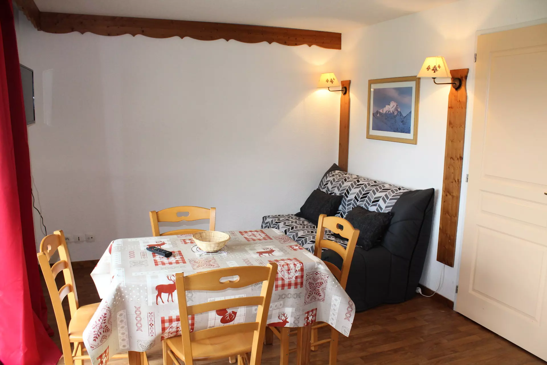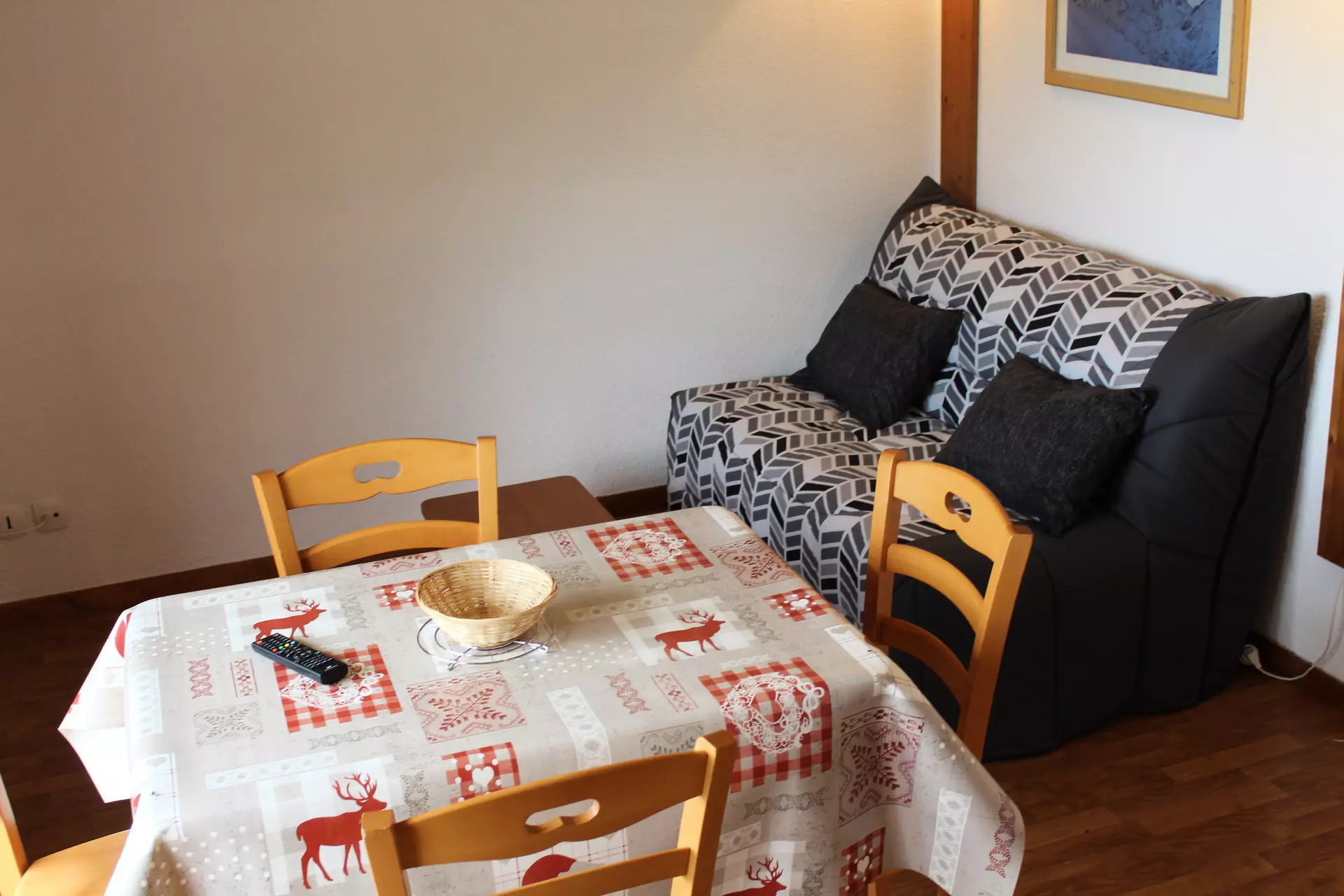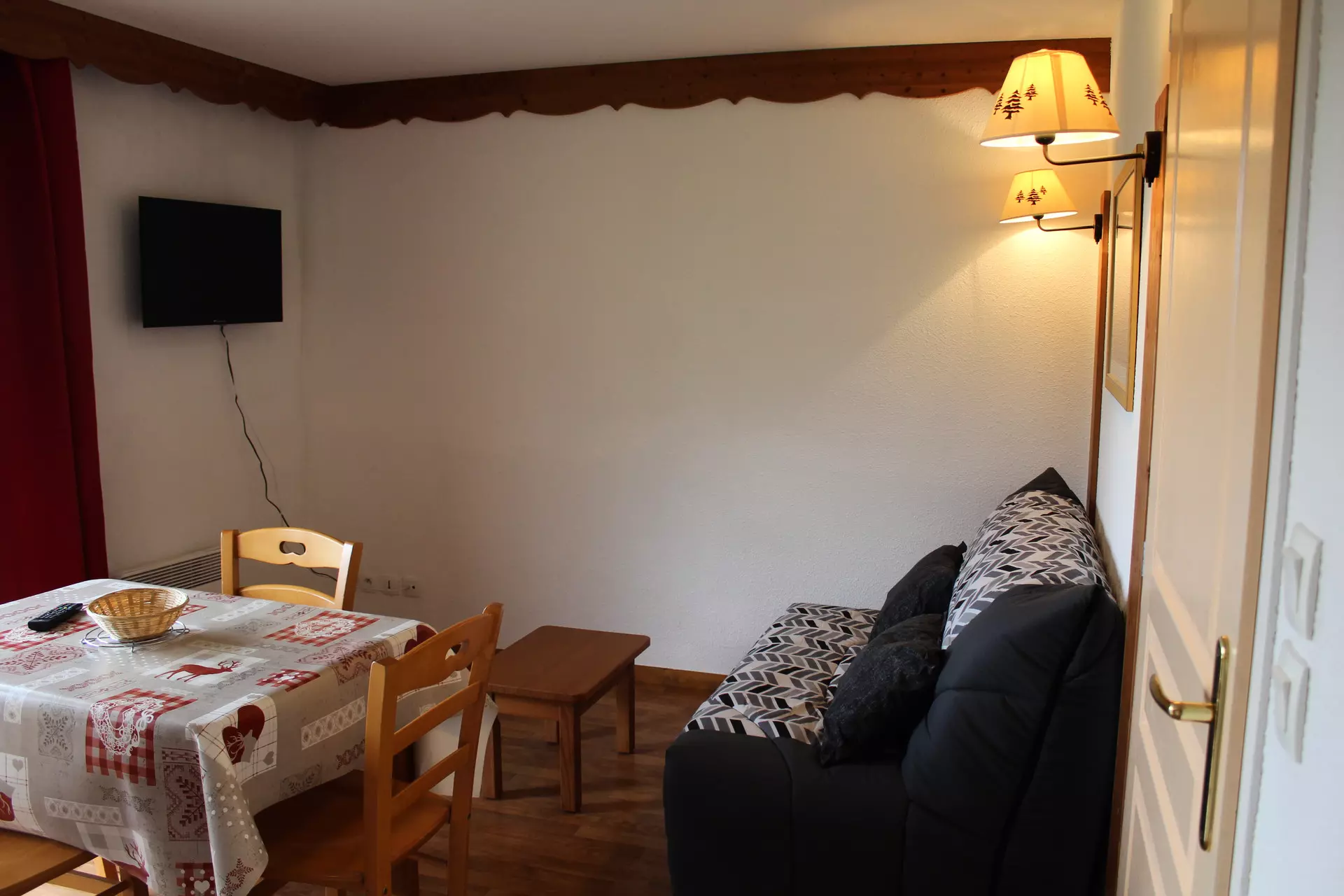 Séjour avec canapé lit. 1 coin montagne avec lit superposé. Télévision comprise.