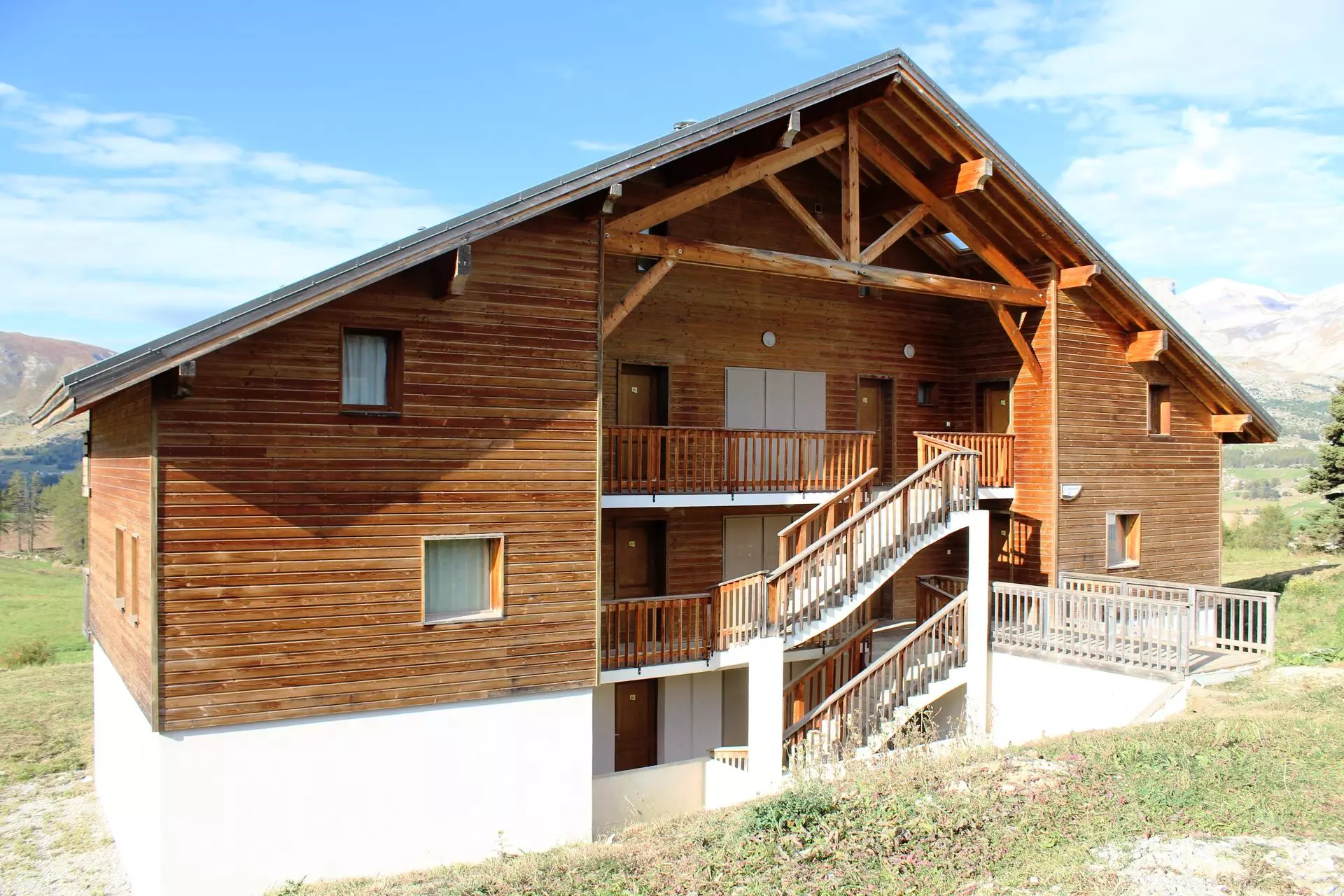 5 résidences de 12 appartements, de 4 à 8 personnes, tous avec terrasse ou balcon, casier à ski individuel. Très belle vue sur montagne de Ferrand, exposition sud-ouest.