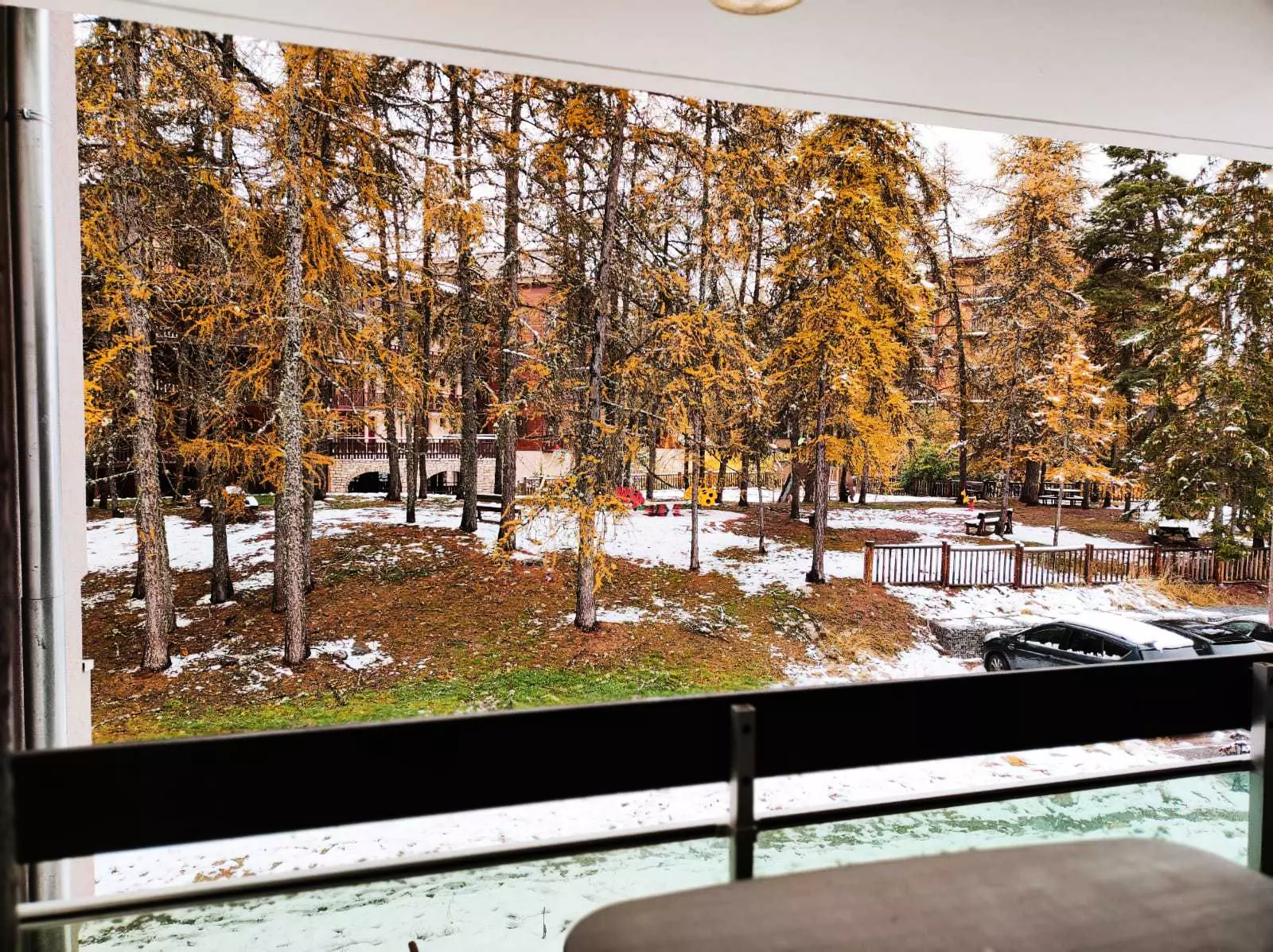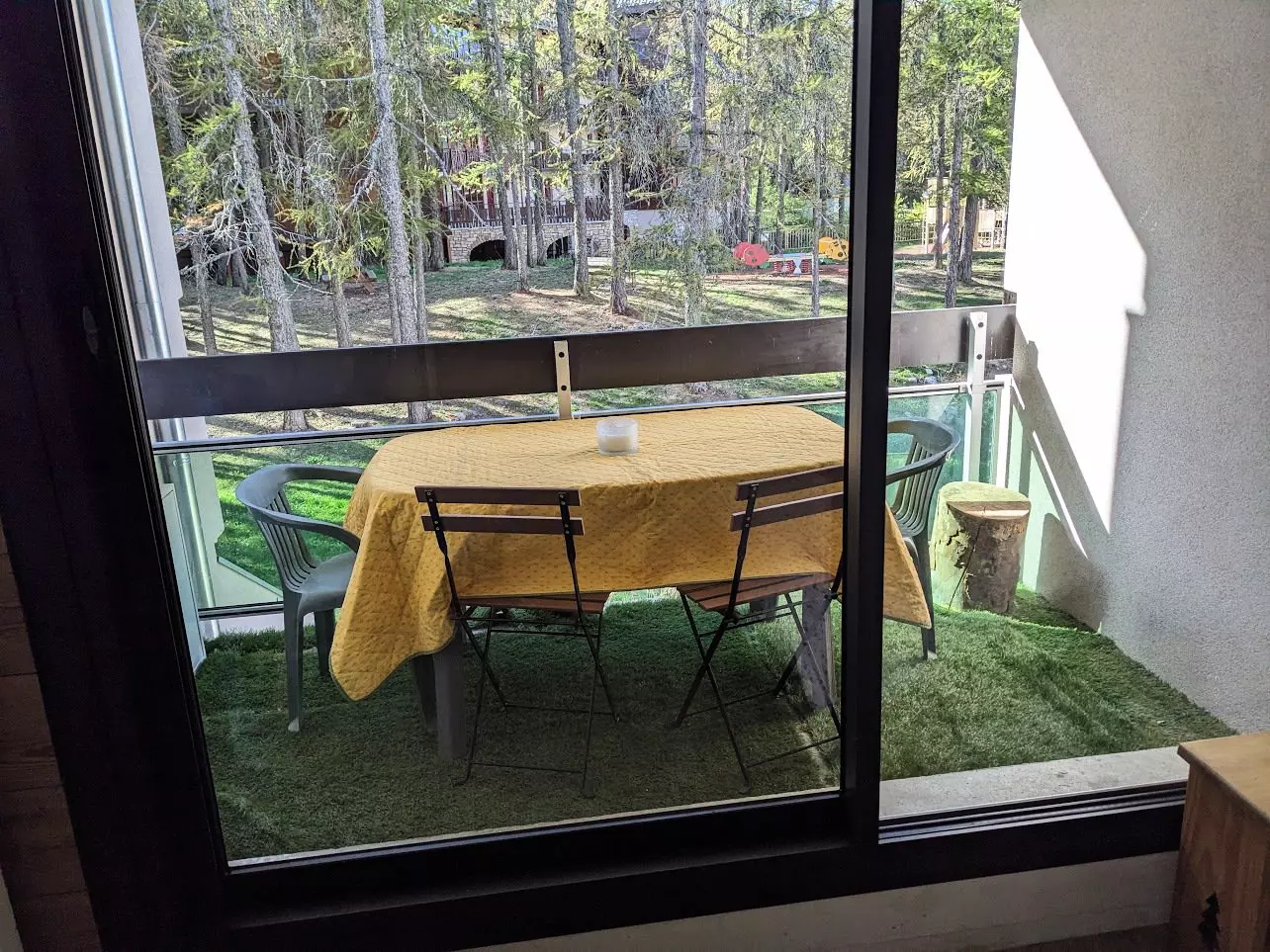 Situé au pied des pistes ainsi que sur le bois des Mélézes avec jeux d'enfant. Grand balcon vue sur front de neige.