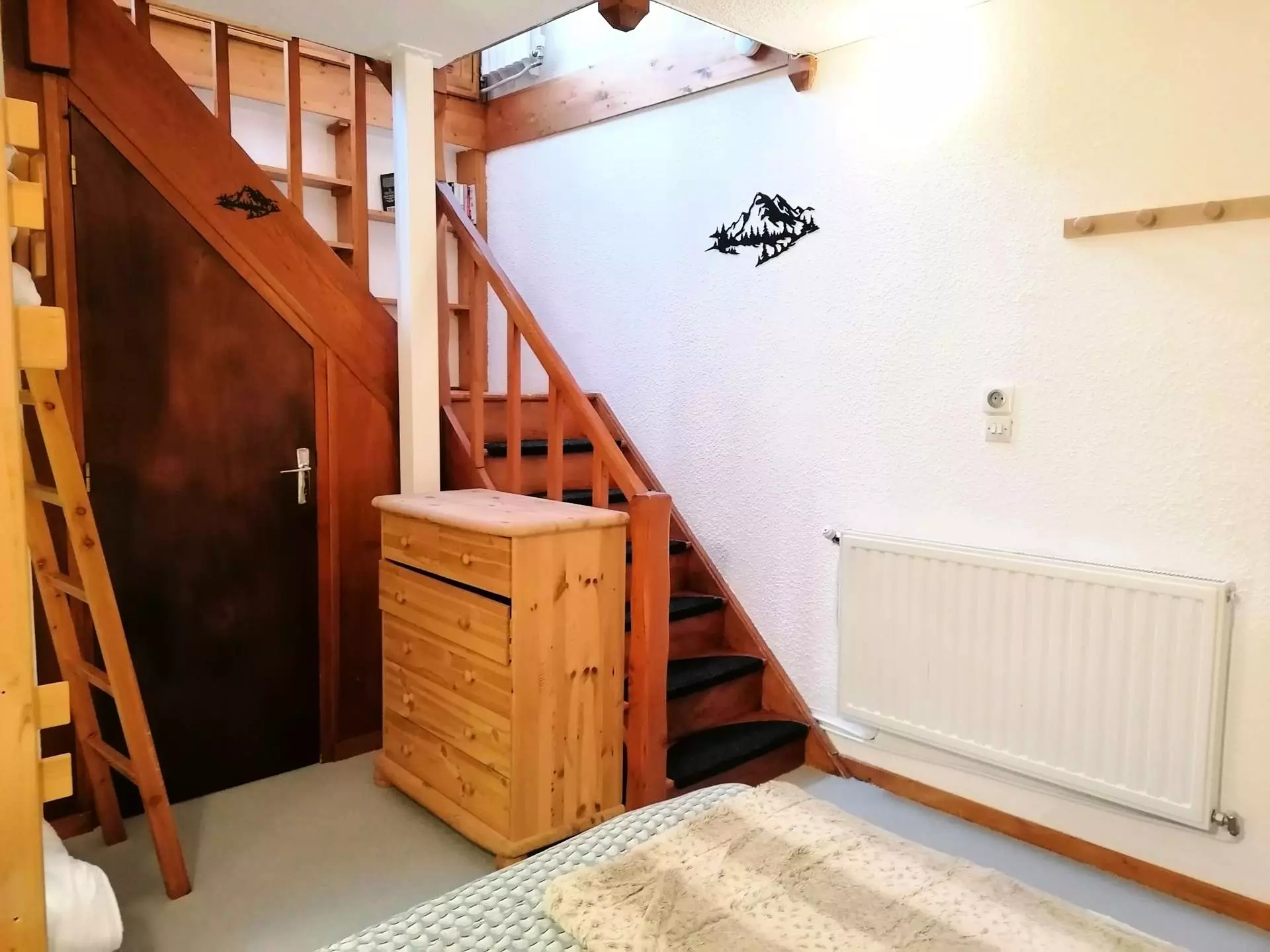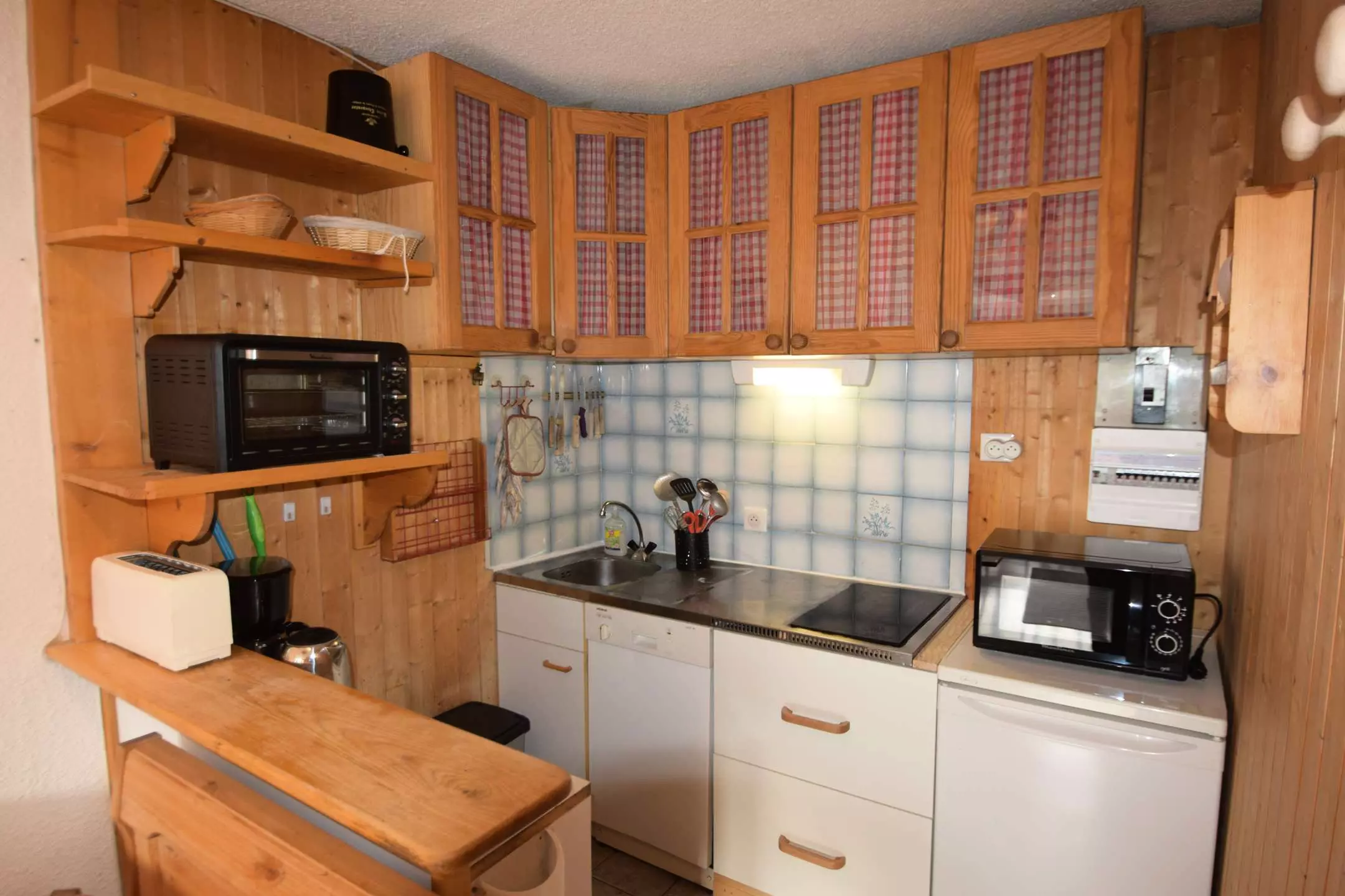 Appartement en souplex 4/5 pers. 33 m2, exposé Sud, vue sur les pistes, terrasse (avec table et bancs), 3ème étage du parking sinon étage RP par ascenseur - Niveau 1 : Cuisine ouverte : 2 plaques vitrocéramiques, four micro-ondes, four, réfrigérateur, lave-vaisselle. Séjour : 1 canapé-lit BZ 2 pers 140cm., T.V. - Niveau-1 accès par escaliers : espace nuit (sans fenêtre) : 1 lit 2 pers 140cm et 1 lit 1 pers 80cm. - Salle de bains : baignoire - WC séparés. Literie : 1 couette 2 pers, 2 couettes 1 pers et 1 couvertures 2 personnes - Sols : séjour : carrelage, autres pièces : moquette. Appartement non fumeur, animaux non admis. En option et en supplément: Ménage de fin de séjour, draps, serviettes, forfaits ski.