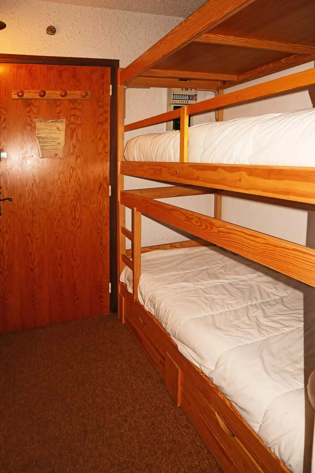 Petite Résidence au calme dans quartier de Prébois, au coeur des mélèzes, à 100 mètres du télésiège et à 400 mètres du centre station et des commerces, studio équipé pour 4 personnes comprenant une entrée avec 2 lits superposés 1 place, un séjour avec 1 banquette convertible clic-clac 2 places, un coin cuisine ouvert sur le séjour, une salle de bains avec WC. Balcon exposition sud. Box à skis dans la résidence. Navette gratuite en période hivernale.