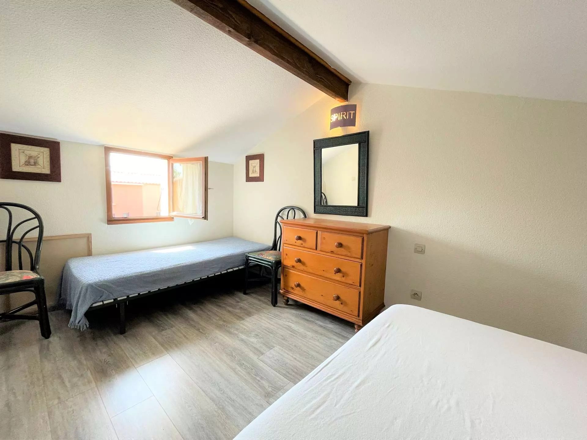 Cette location à la mer rénovée avec gout est aménagée en un séjour avec télévision, un coin cuisine équipé, salle d'eau-wc. A l'étage vous trouverez 3 chambres : une chambre comprenant 1 lit double en 140 et un lit simple en 90 ; une seconde chambre avec un lit double en 140 et une troisième petite chambre avec un lit simple en 90.