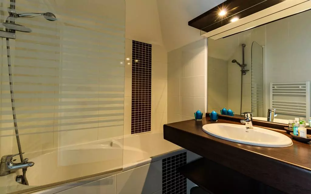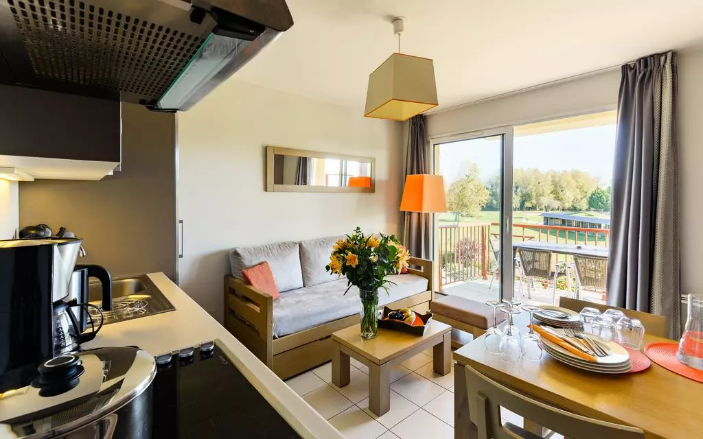 L'équipement comprend une kitchenette avec four micro-ondes/grill + plaques vitrocéramiques + hotte aspirante + lave-vaisselle + réfrigérateur (avec compartiment congélateur en 36X et 38K) + cafetière + bouilloire + grille-pain, wc séparés ou non, balcon ou terrasse avec salon de jardin.