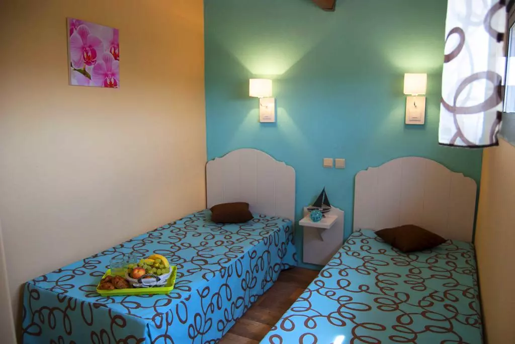 Chambre avec 2 lits simples et chambre avec 2 lits superposés.