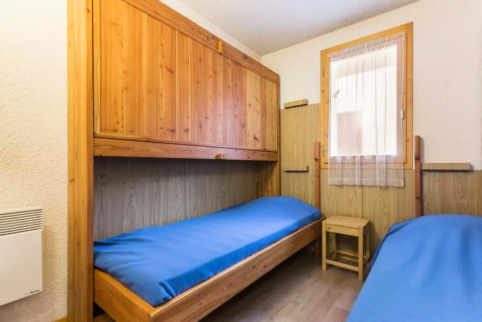 Dans le salon vous disposez d'une banquette lit peigne et dans la chambre d'un ensemble lits superposés (interdit aux enfants de moins de 6 ans).