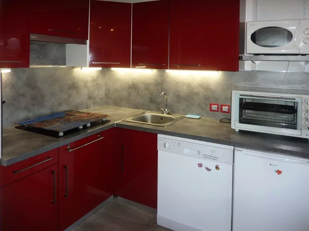Entrée avec coin cuisine avec lave vaisselle, chambre 1 lit 2 places en 140,'un séjour avec 1 banquette convertible BZ 2 places, salle d'eau avec wc, 2 balcons exposé Ouest avec vue sur la vallée.