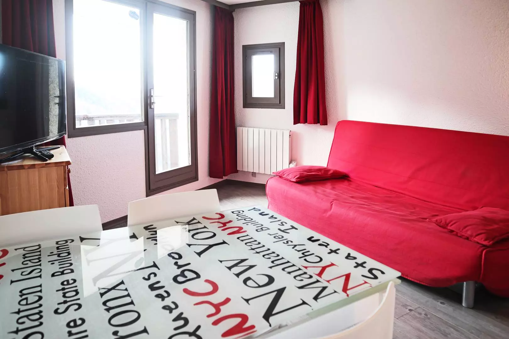 Balcon offrant une très belle vue sur la station et les pistes.