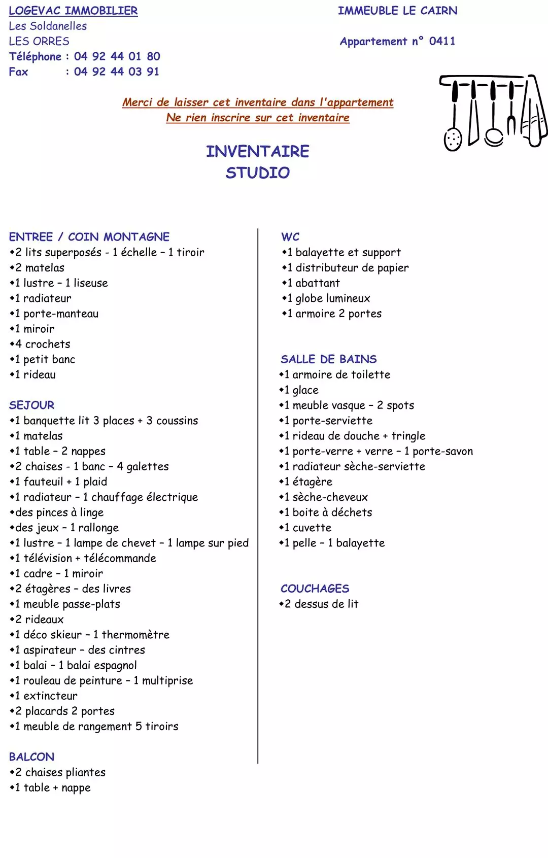 STUDIO N° 411 LE CAIRN