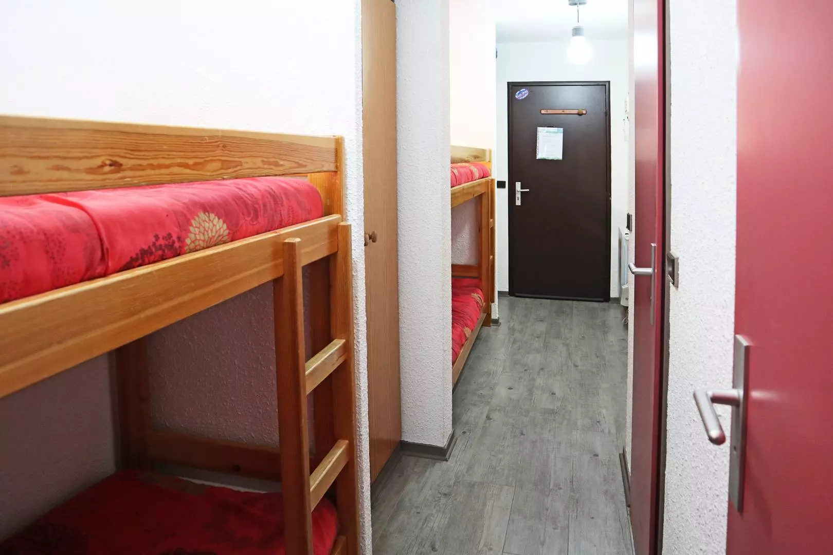 Résidence le cairn située en cœur de station avec accès direct aux pistes et commerces, appartement de type 2 pièces équipé pour 6 personnes composé d'une entrée avec 2 lits superposés 1 place, séjour avec 1 banquette convertible 2 places, chambre avec 1 lit 2 places, salle de bains et wc indépendants, coin cuisine ouvert sur le séjour.
