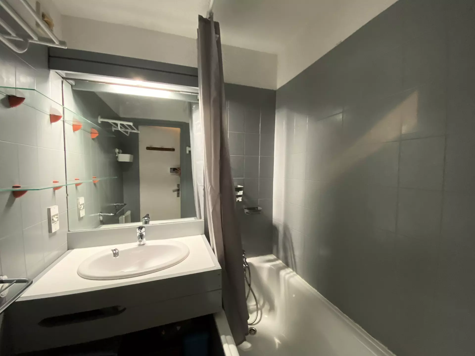 La salle de bains est composée d'une baignoire pour vous relaxer après vos journées en montagne ainsi que d'une sèche-cheveux pour alléger vos valises.