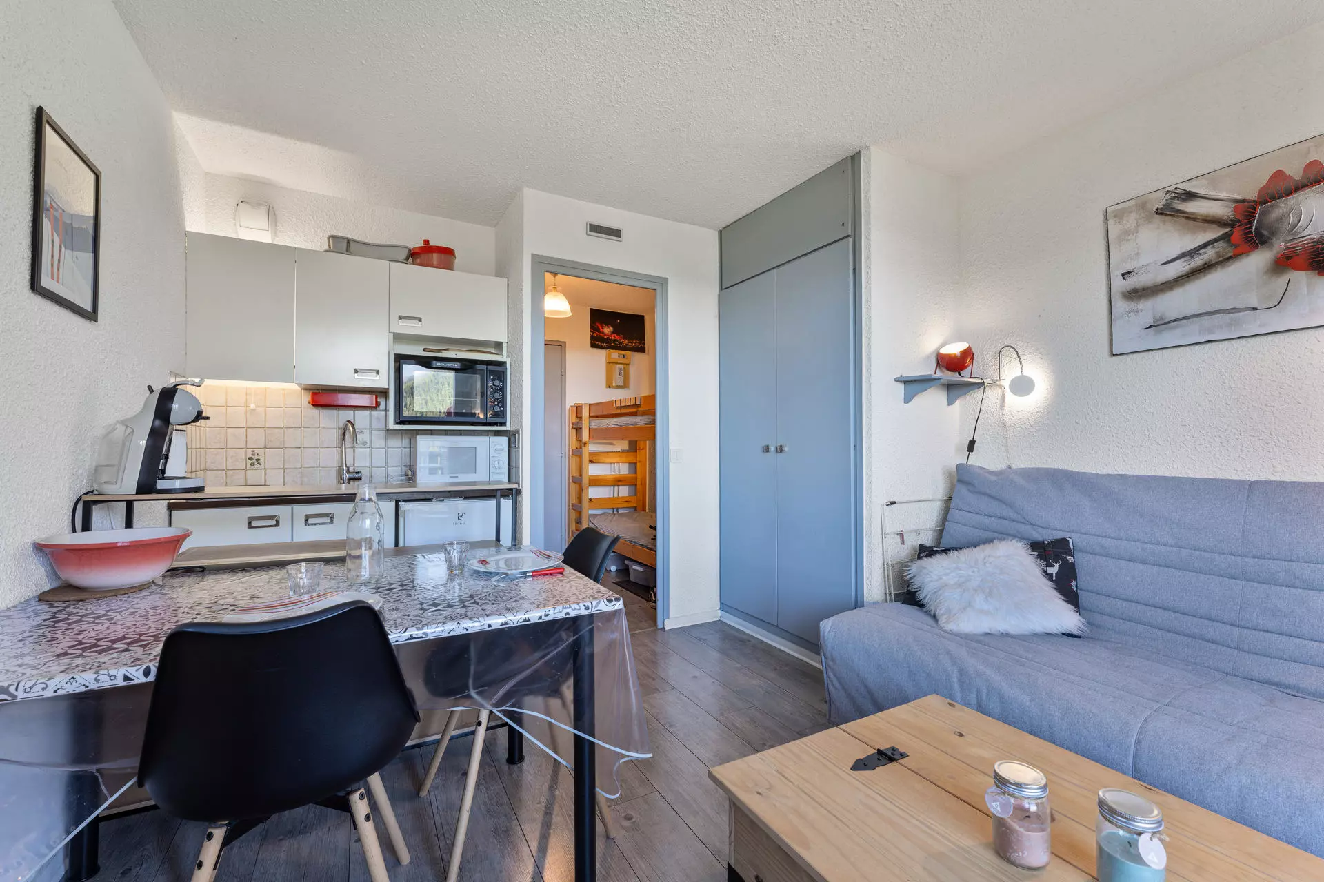 L'Agence des Orres vous propose ce studio de 19 m² aménagé pour 4 personnes et situé au 9ème étage du bâtiment "Le Cairn". Il vous offre une splendide vue sur la vallée embrunaise, le lac de Serre-Ponçon et une agréable luminosité.