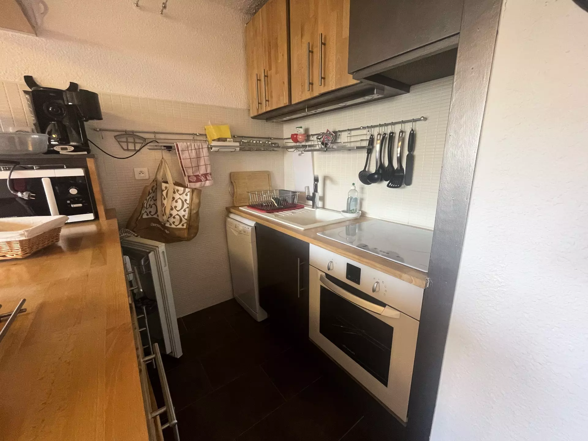 Cuisine ouverte entièrement équipée (lave-vaisselle,lave-linge, four, micro-ondes, plaque, réfrigérateur, cafetière Tassimo, etc.)
