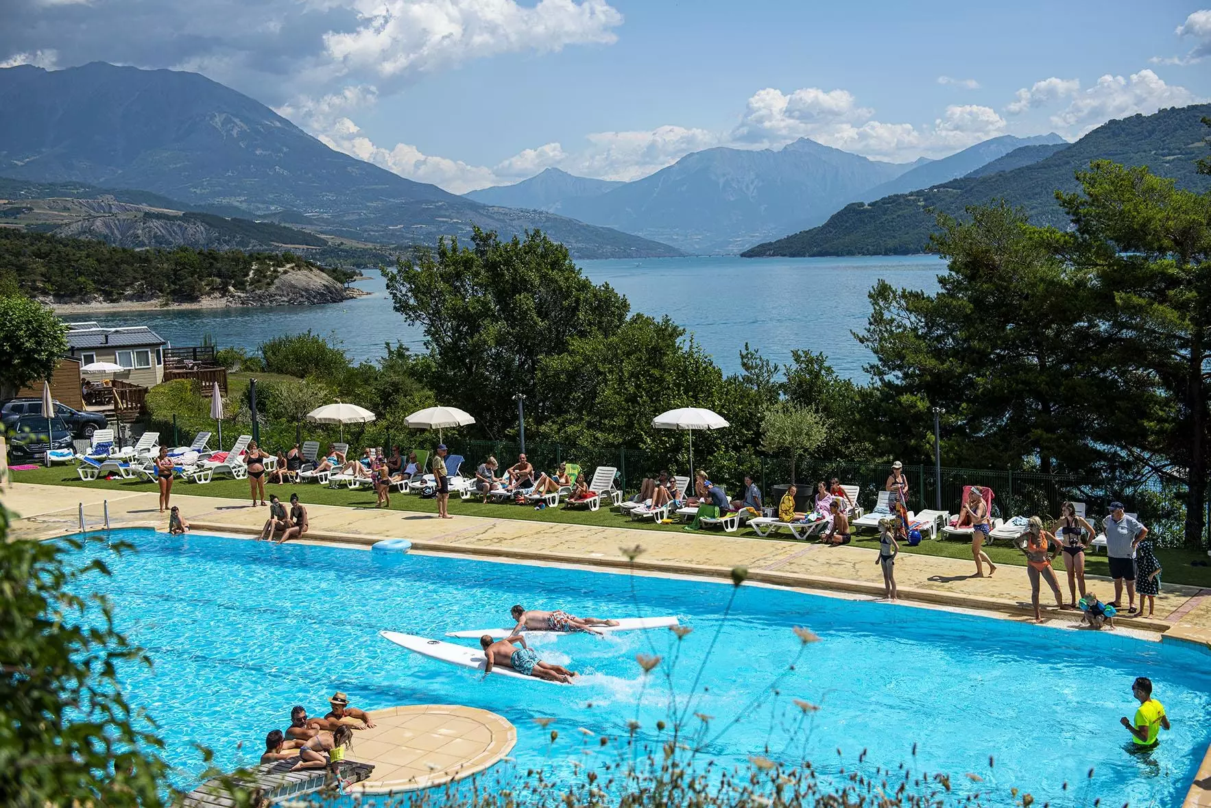 La situation au bord du Lac de Serre-Ponçon, la nature environnante, la piscine, les animations en haute saison, etc. font du domaine de l'Ecrin du Lac une destination d'excellence !