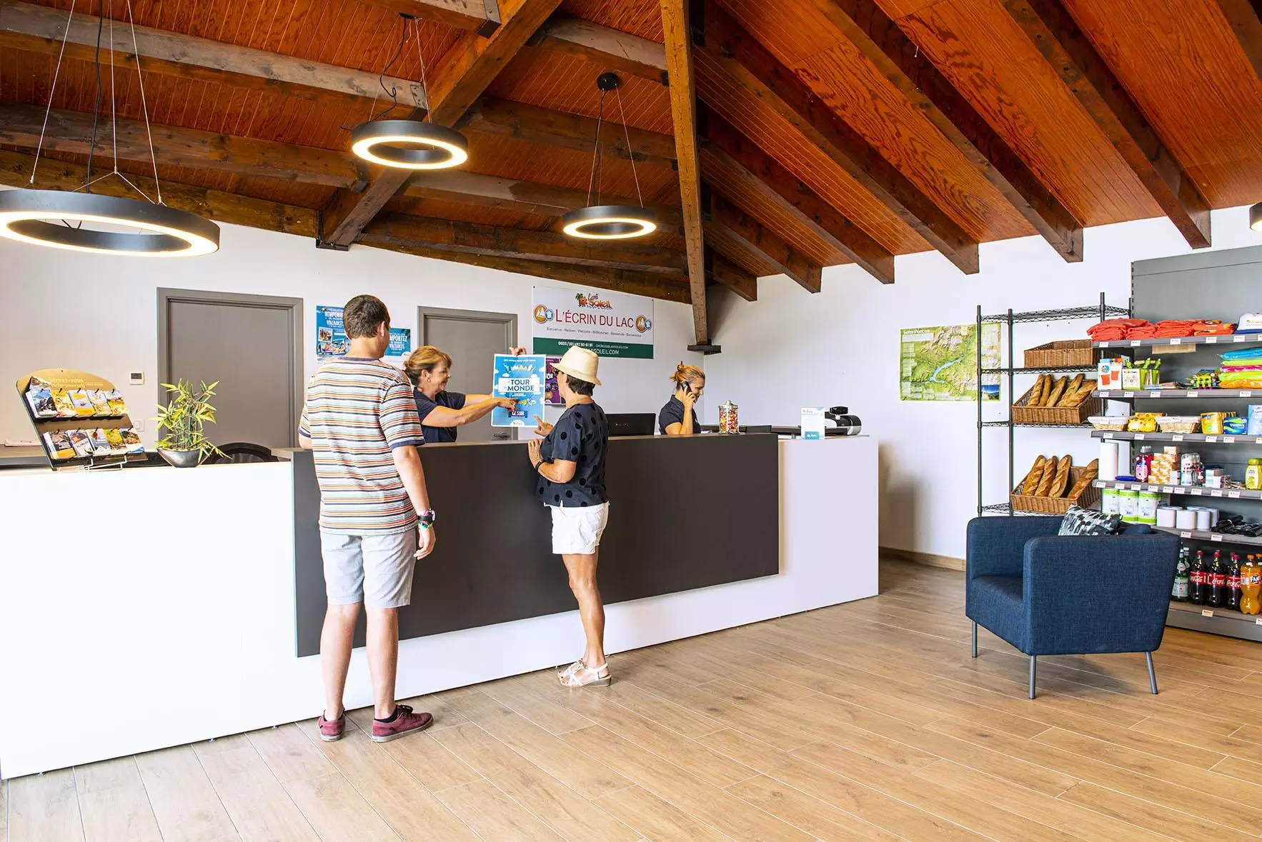 Les vacances, c'est aussi savourer un bon repas dans une ambiance familiale. Le bar du domaine, avec sa terrasse panoramique, est ouvert en été et vous propose une petite restauration. Profitez aussi en été d'un service boulangerie.