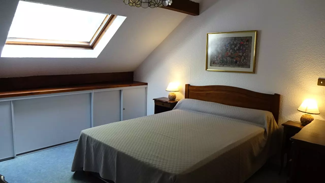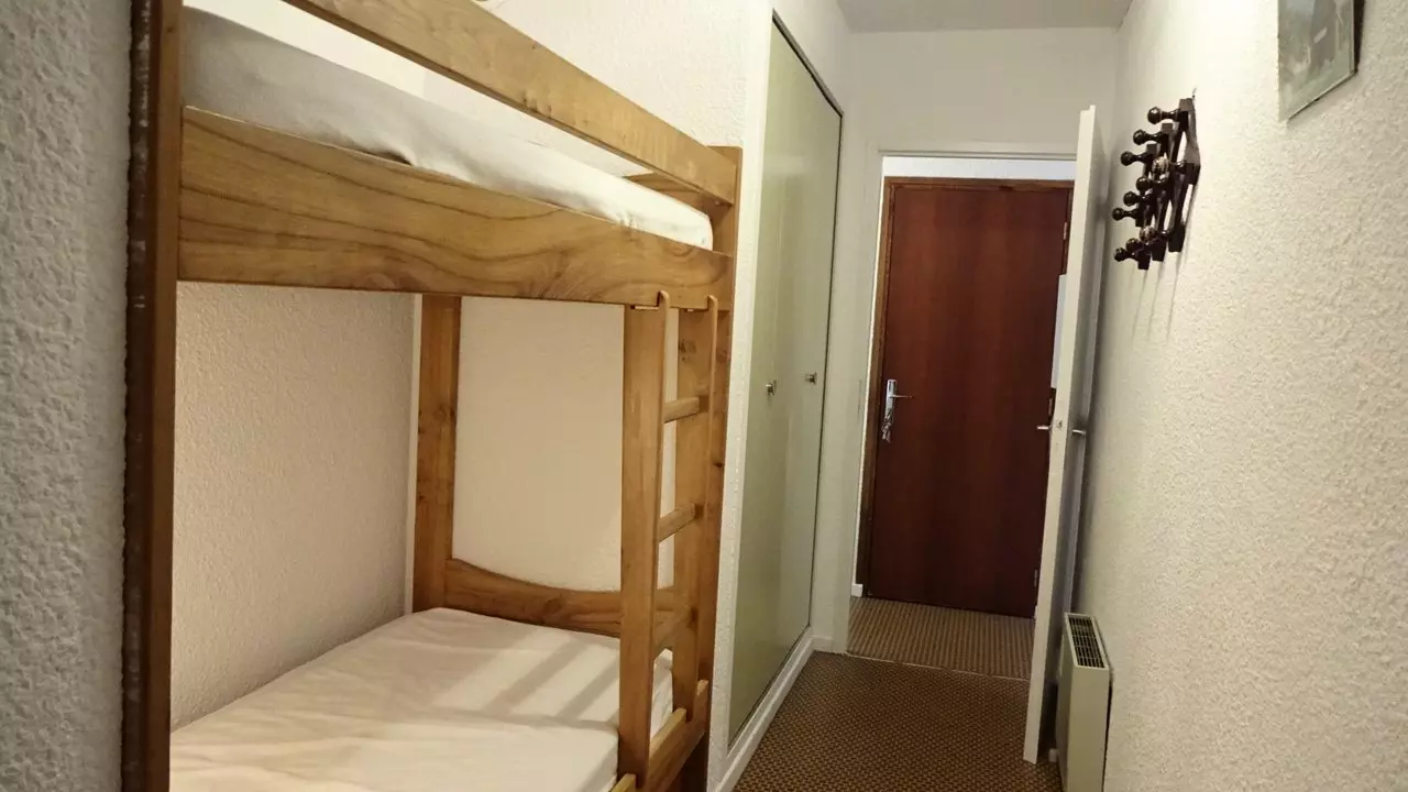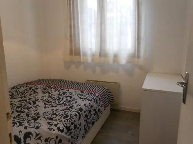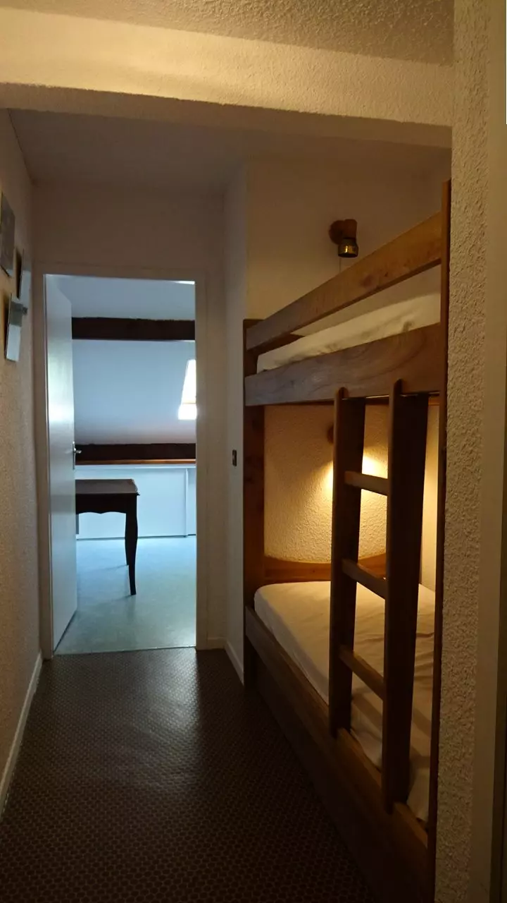 Une chambre avec un lit en 140 et un meuble de rangement exposée Est et deux lits superposés dans le couloir et placard de rangement. Une salle de bain avec les WC. Garage fermé.