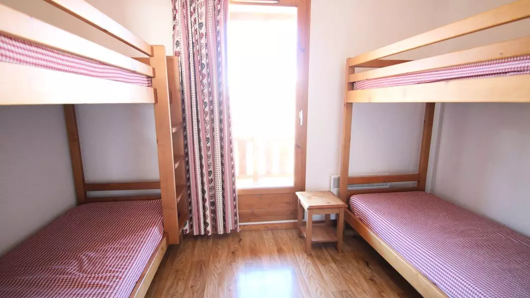 - A l'étage : une chambre avec lit double donnant sur un petit balcon nord, une chambre avec 2 X 2 lits superposés, placard et penderie. Salle de bain.