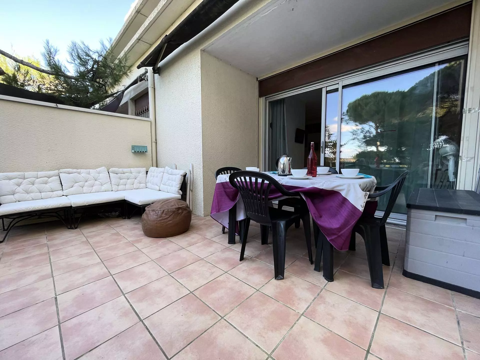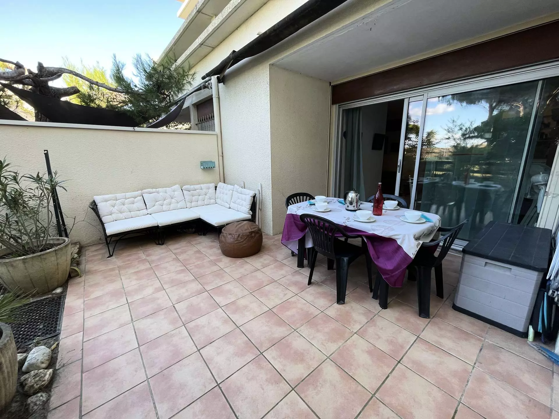 Située dans la quartier nord de Port Camargue, la résidence se situe en bord de mer . Cet appartement est situé en rez-de-chaussée et se compose d'un séjour avec un canapé lit double avec téléviseur, coin cuisine équipée , d'une cabine fermée avec 2 lits superposés en 80 ,d'une chambre avec un lit en 140 et rangement; d'une salle de bains avec baignoire, WC indépendant et d'un jardin de 20 m2 avec un accès direct a la plage!
