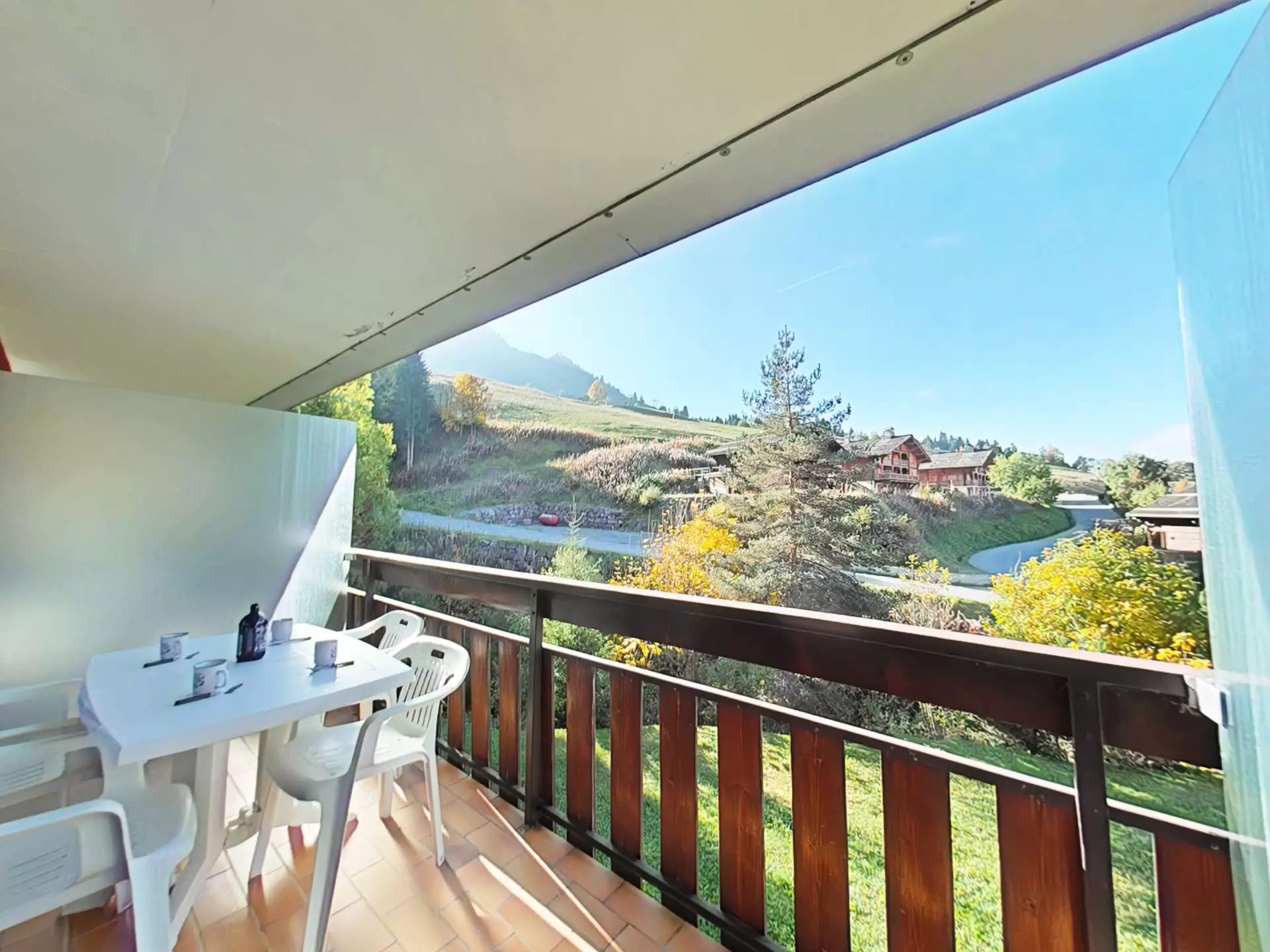 Cet appartement de vacances situé au rez-de-chaussée, comprend un séjour avec un clic clac 2 places, télévision, un balcon orienté sud ouest avec vue sur les pistes et le village, un coin cuisine équipé, un coin nuit avec 2 lits superposés, une salle d'eau avec WC.