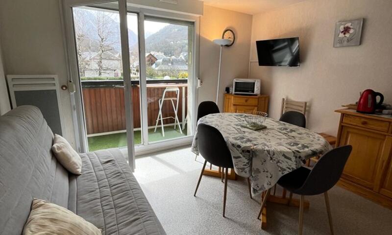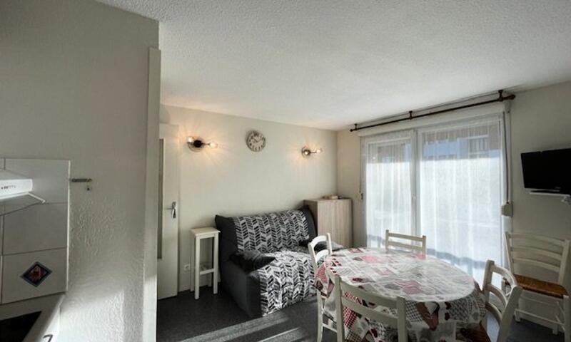 Dans la résidence VIGNEMALE à deux pas du centre situé au 2 ième étage avec ascenseur, appartement 4/6 personnes composé d'un séjour avec canapé CLIC-CLAC, TV et kitchenette bien équipée avec LV MO MINI-FOUR donnant sur un balcon exposé sud avec une table et 4 chaise hautes, un espace nuit avec un lit en 140 et un coin montagne avec 2 lits superposés. Salle d'eau .WC séparés. Casier à skis et local à vélo.