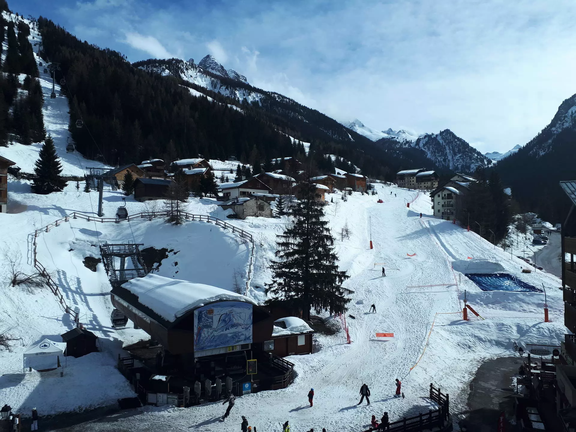 - Balcon avec exposition sud donnant sur la place principale et les remontées mécaniques.