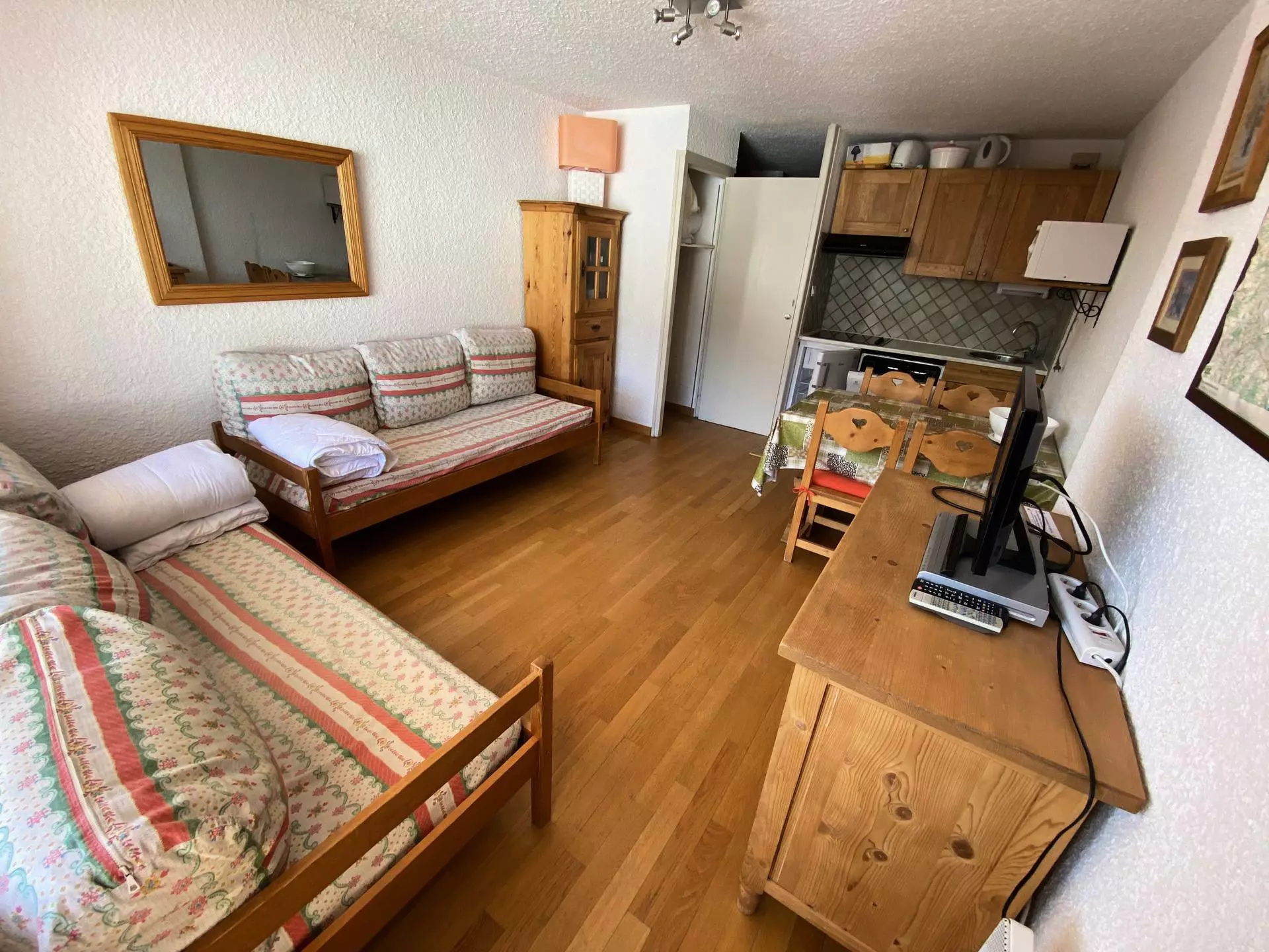 Le + : Superbe appartement situé directement sur les pistes de ski - Très bonne literie - lits superposés rabatttables pour gain de place en journée - Accès direct aux pistes - Superbe vue pistes et Janus