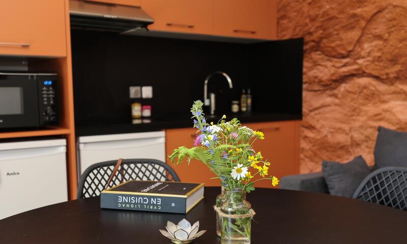 Le gîte est équipé d'une télévision, d'un réfrigérateur, d'un freezer, d'un lave-vaisselle, d'une plaque de cuisson 2 feux, d'un micro-ondes, d'un mini four, d'un grille-pain, d'une bouilloire, d'une cafetière électrique et d'un salon de jardin sur la terrasse.