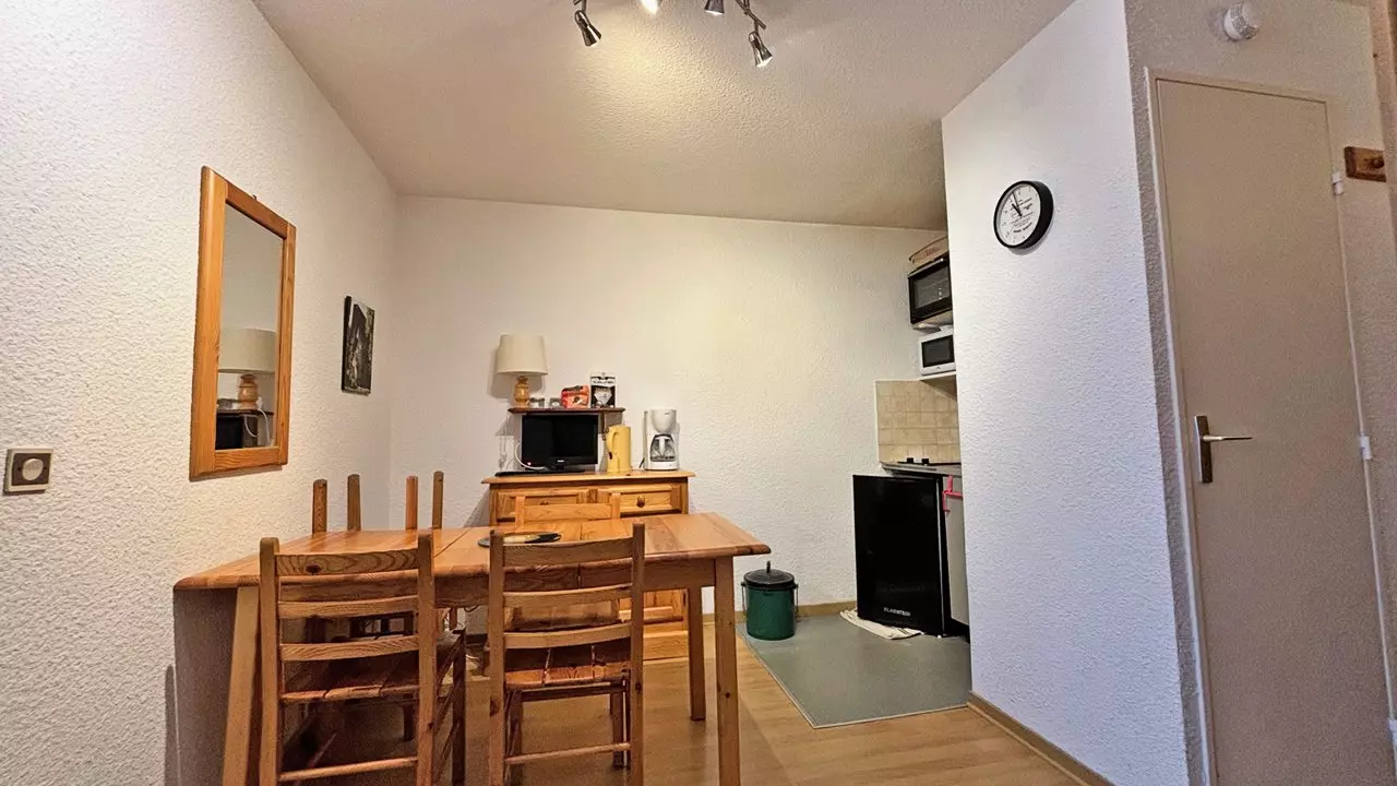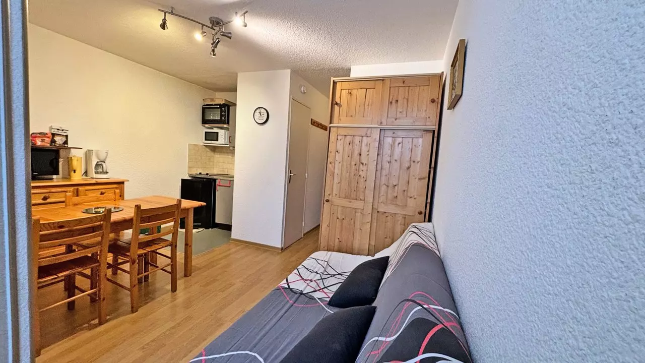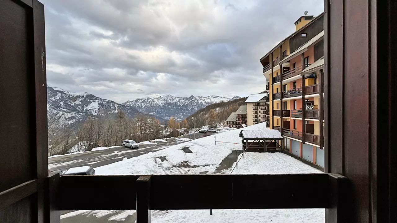Joli appartement de 23m2 pour vos vacances en famille à Puy Saint Vincent, meublé et équipé pour 4 personnes avec balcon vue sur les montagnes et la vallée.