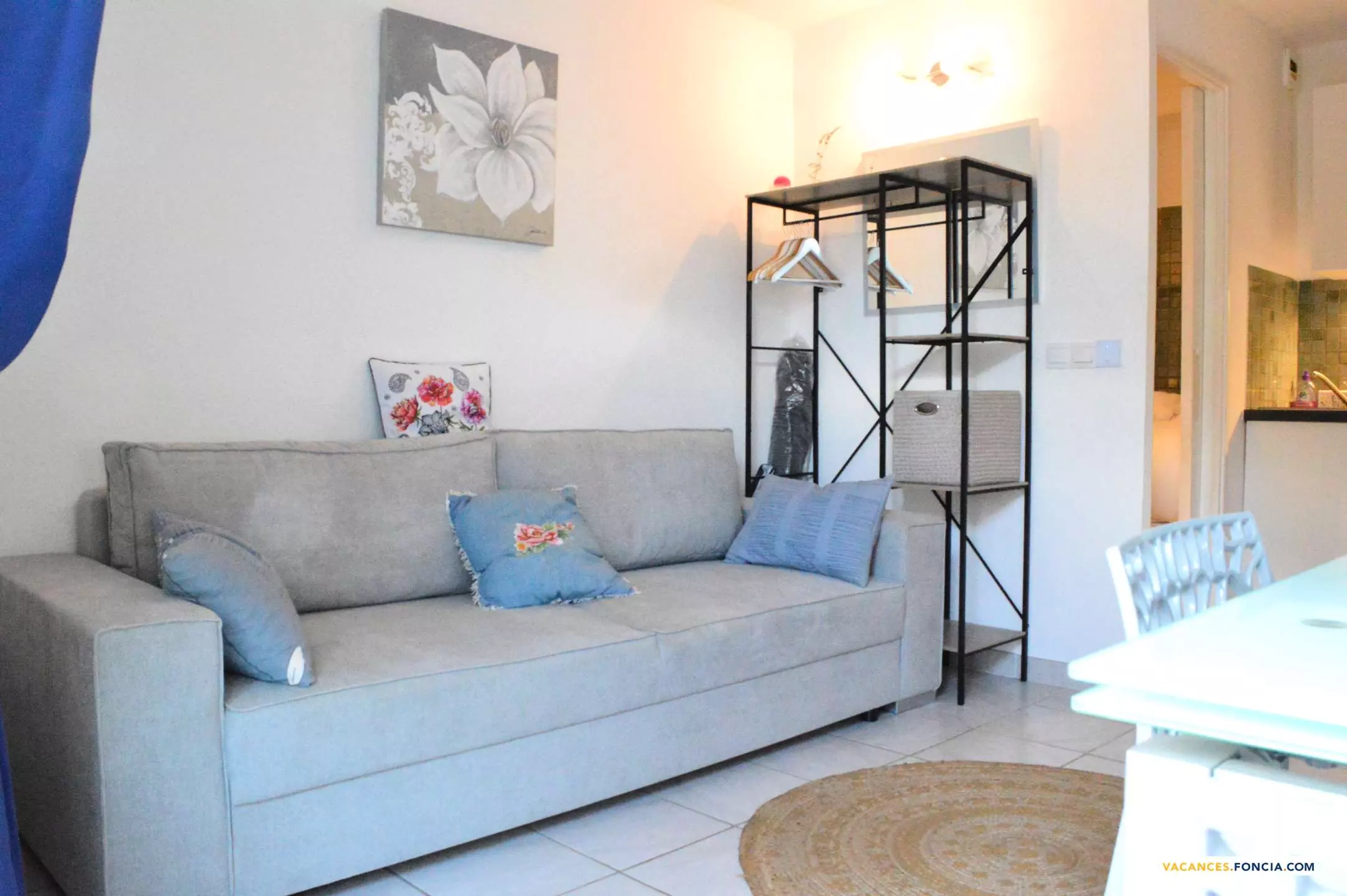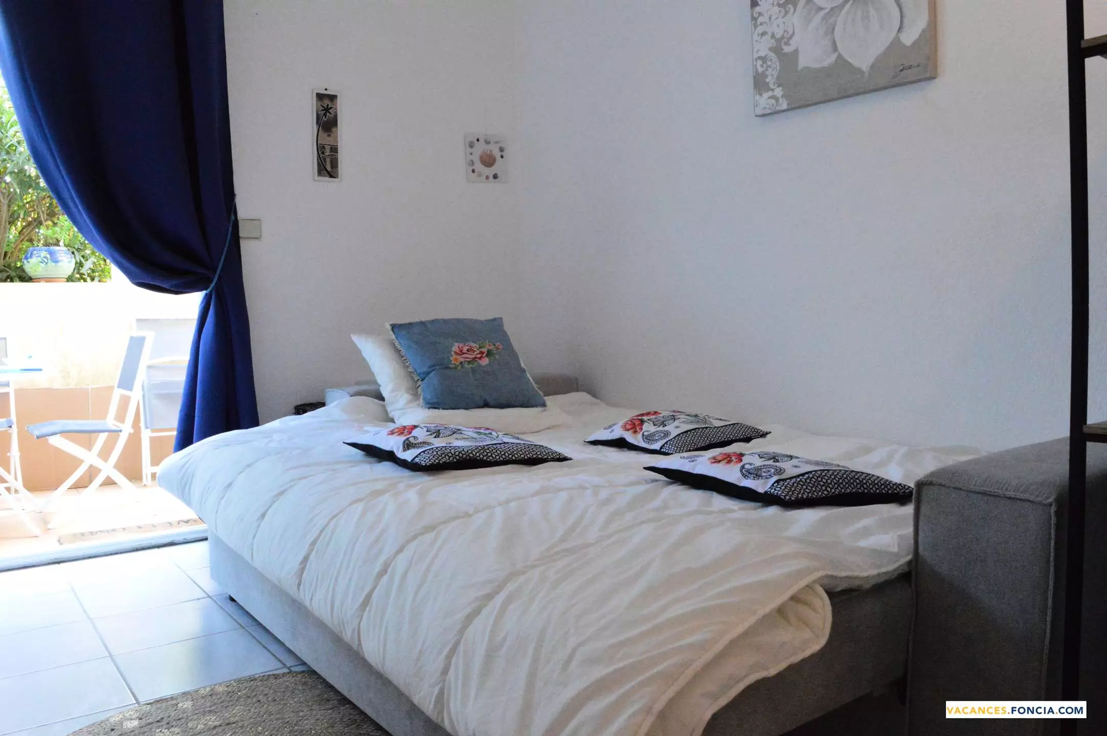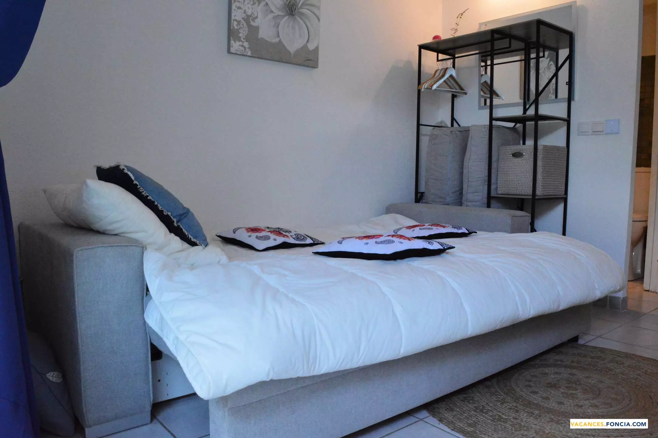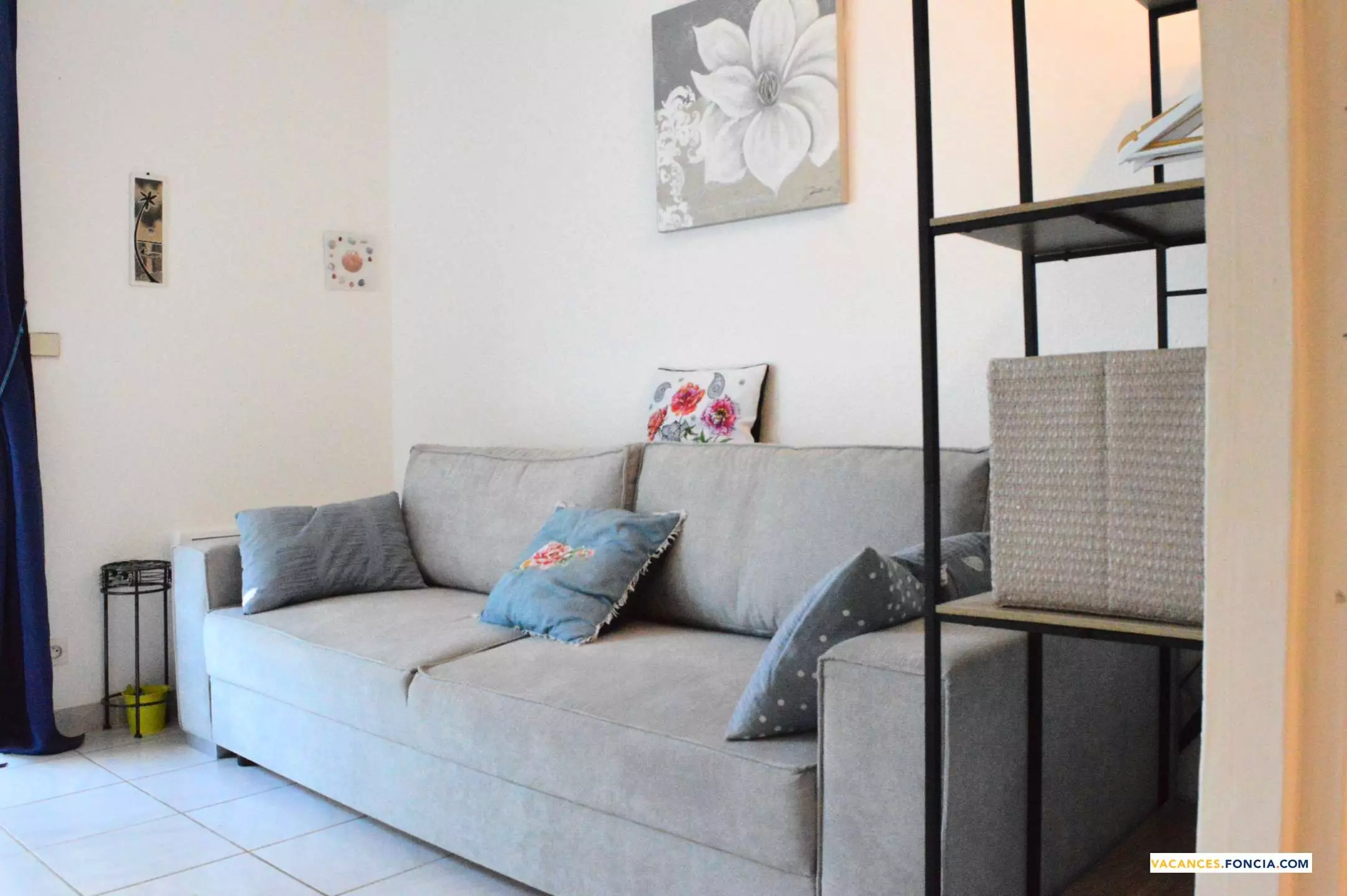 Niché au calme sur les hauteurs de Narbonne plage, ce charmant studio en rez-de-chaussée vous accueille dans la résidence Les Foulquines (Bâtiment P). Profitez d'un séjour décontracté avec son canapé-lit à deux places, sa télévision et sa terrasse ombragée - l'espace idéal pour vos repas en extérieur.