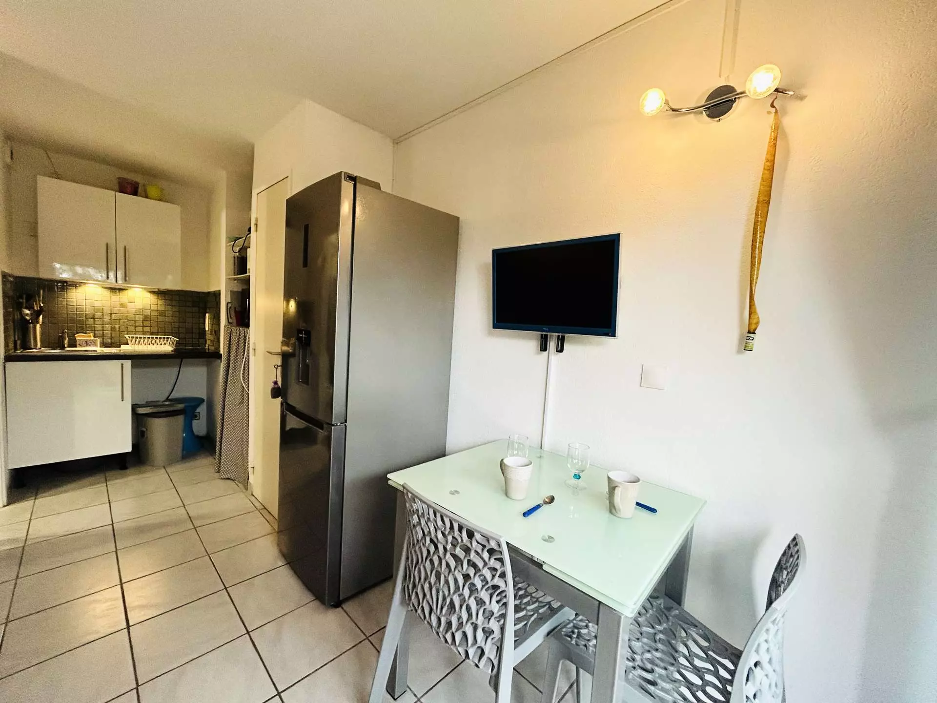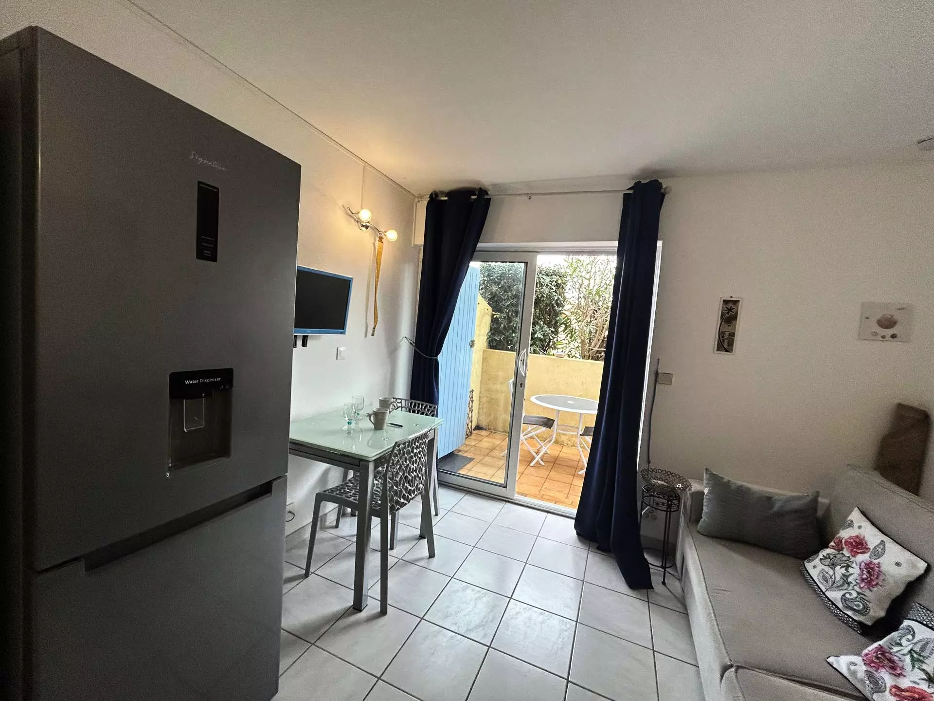 L'appartement dispose d'un coin cuisine fonctionnel et d'une salle d'eau avec WC. Vous apprécierez particulièrement les atouts de cet emplacement balnéaire : une piscine collective pour se rafraîchir pendant les chaudes journées d'été et un parking privé pour stationner en toute tranquillité. La proximité du massif de la Clape vous offre également de belles possibilités de randonnées dans un cadre naturel exceptionnel.